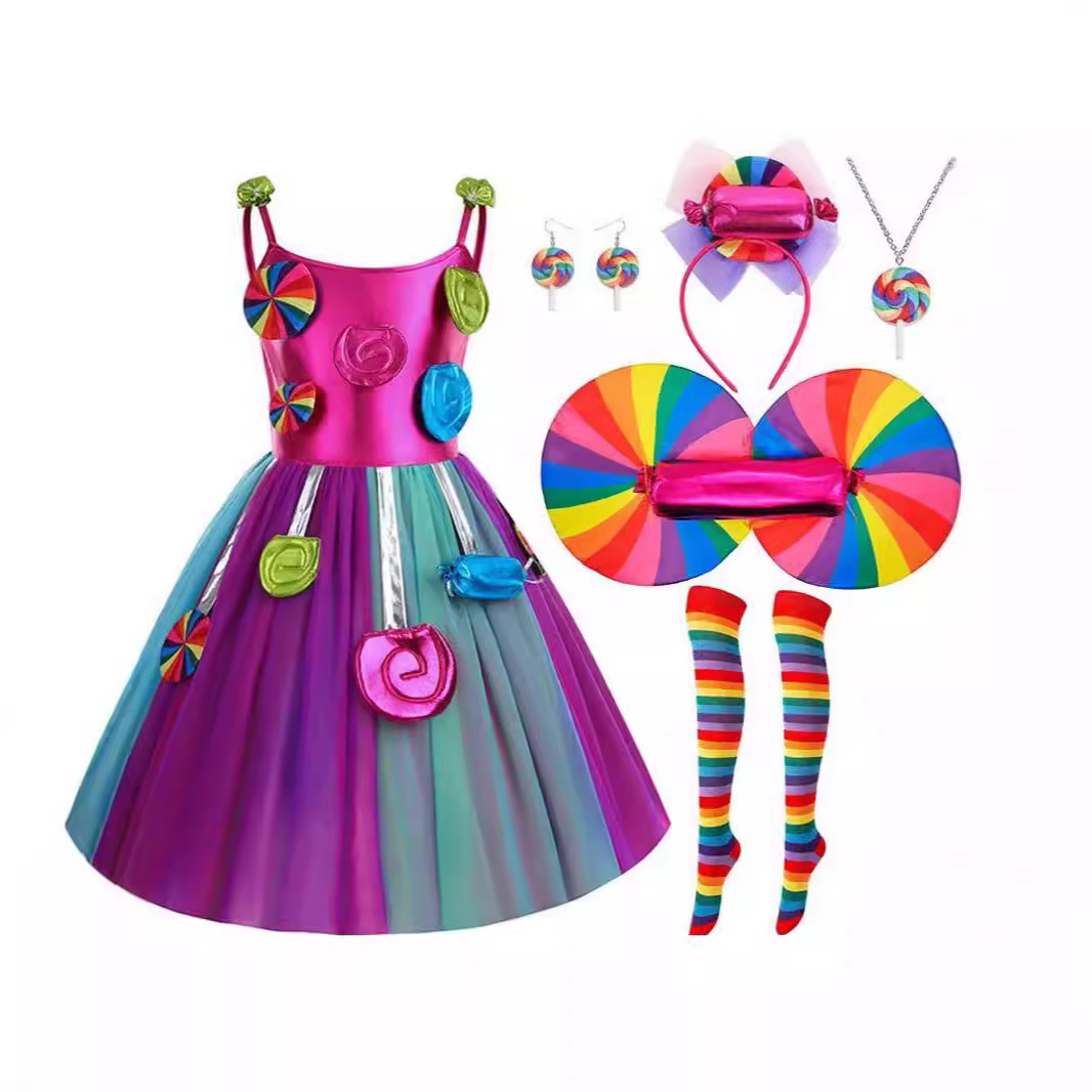 国境を越えた新しい子供ハロウィーンの爆発キャンディーのお姫様スカートとスカートにキャンディーの頭飾りのアメがついている