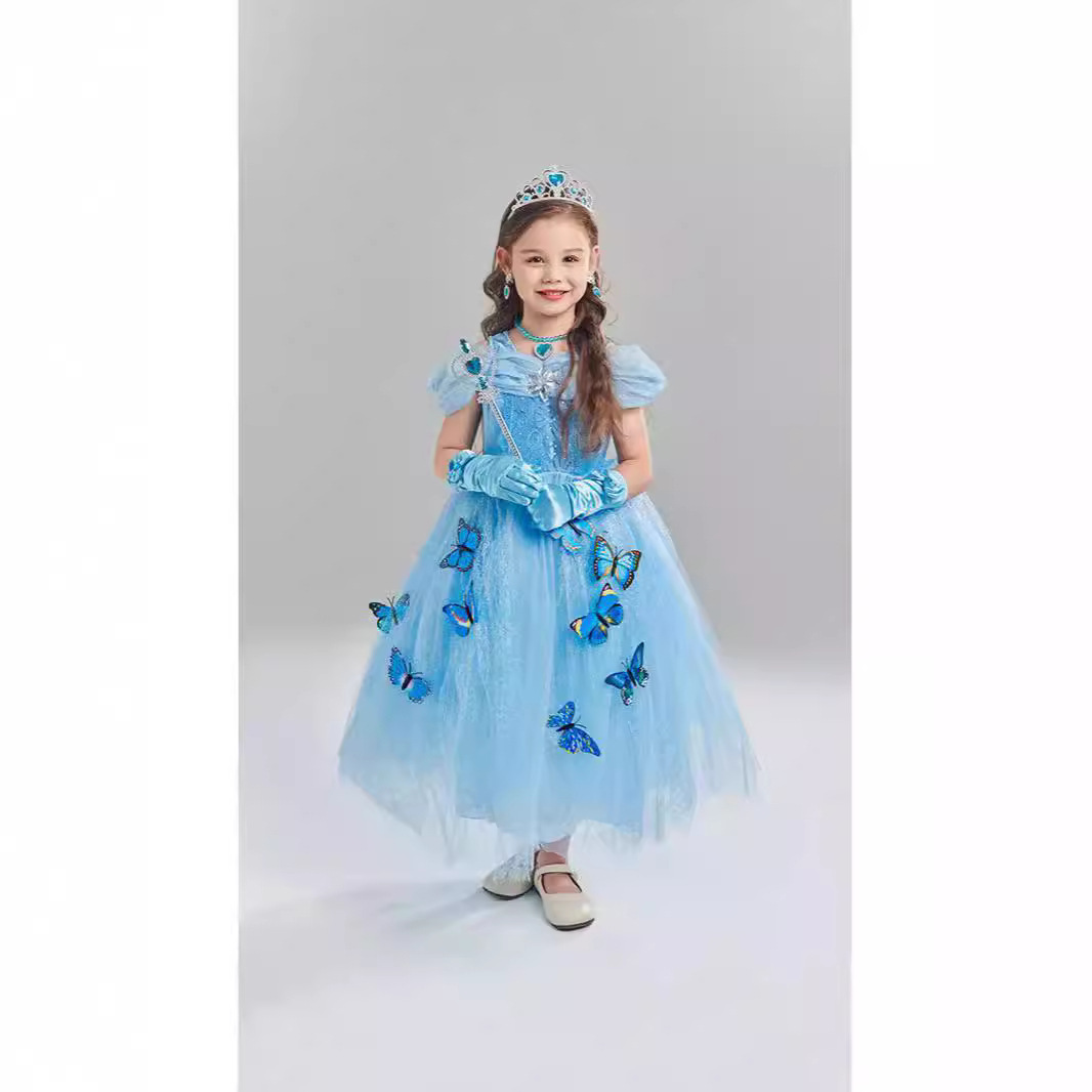 国境を越えたハロウィーンの少女シンデレラワンピース雪氷奇縁艾莎プリンセススカート演出服蝶のドレス