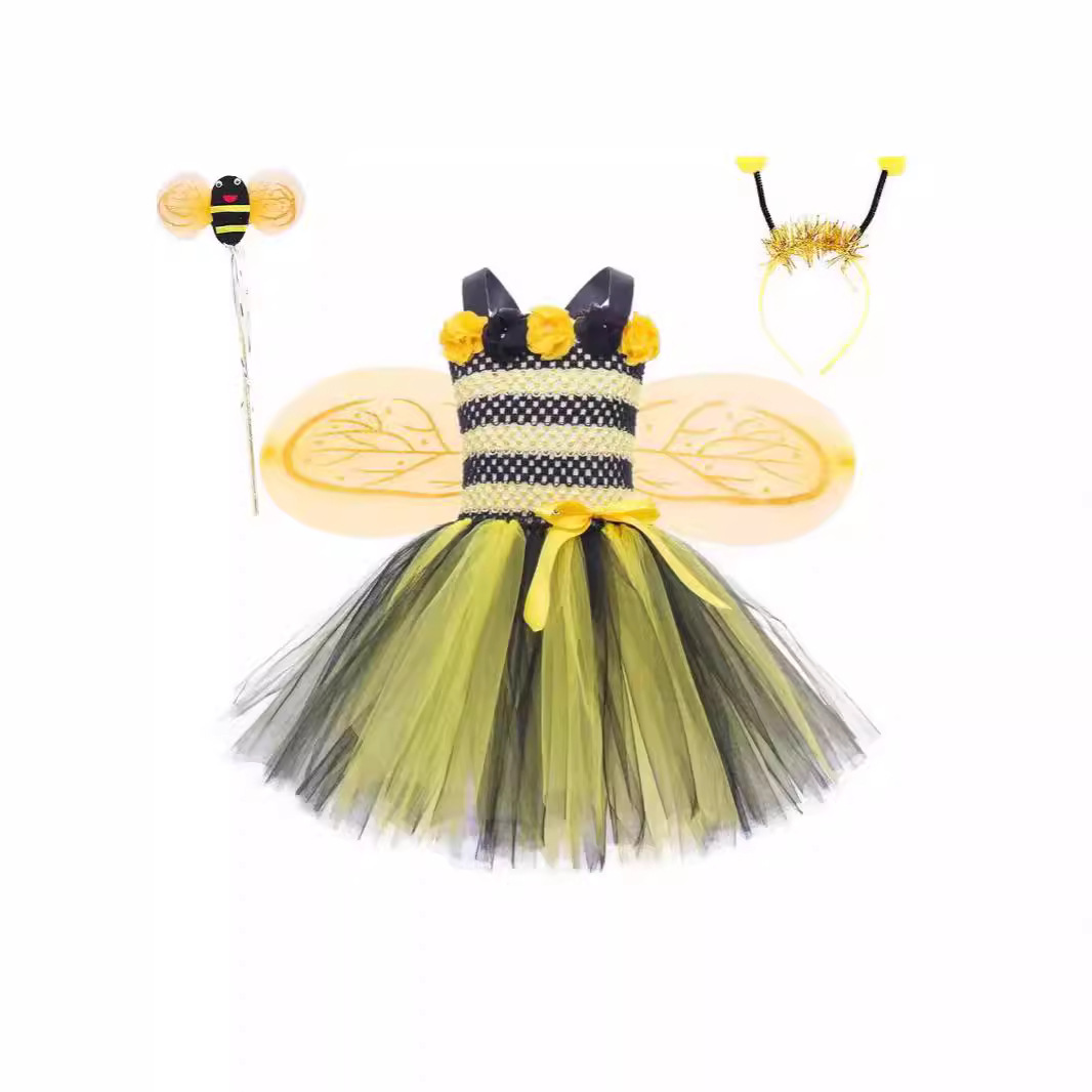 クロスボーダーの女の子の黄色の小さい蜂の王女のスカートの網の紗の蓬蓬のスカートのハロウィンの漫画のダンスのショーの服