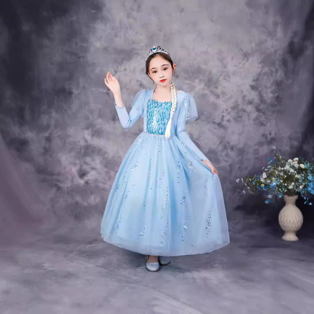 2024新作アナと雪の女王2艾莎お姫様スカート子供秋Elsa長袖純綿女児ワンピース