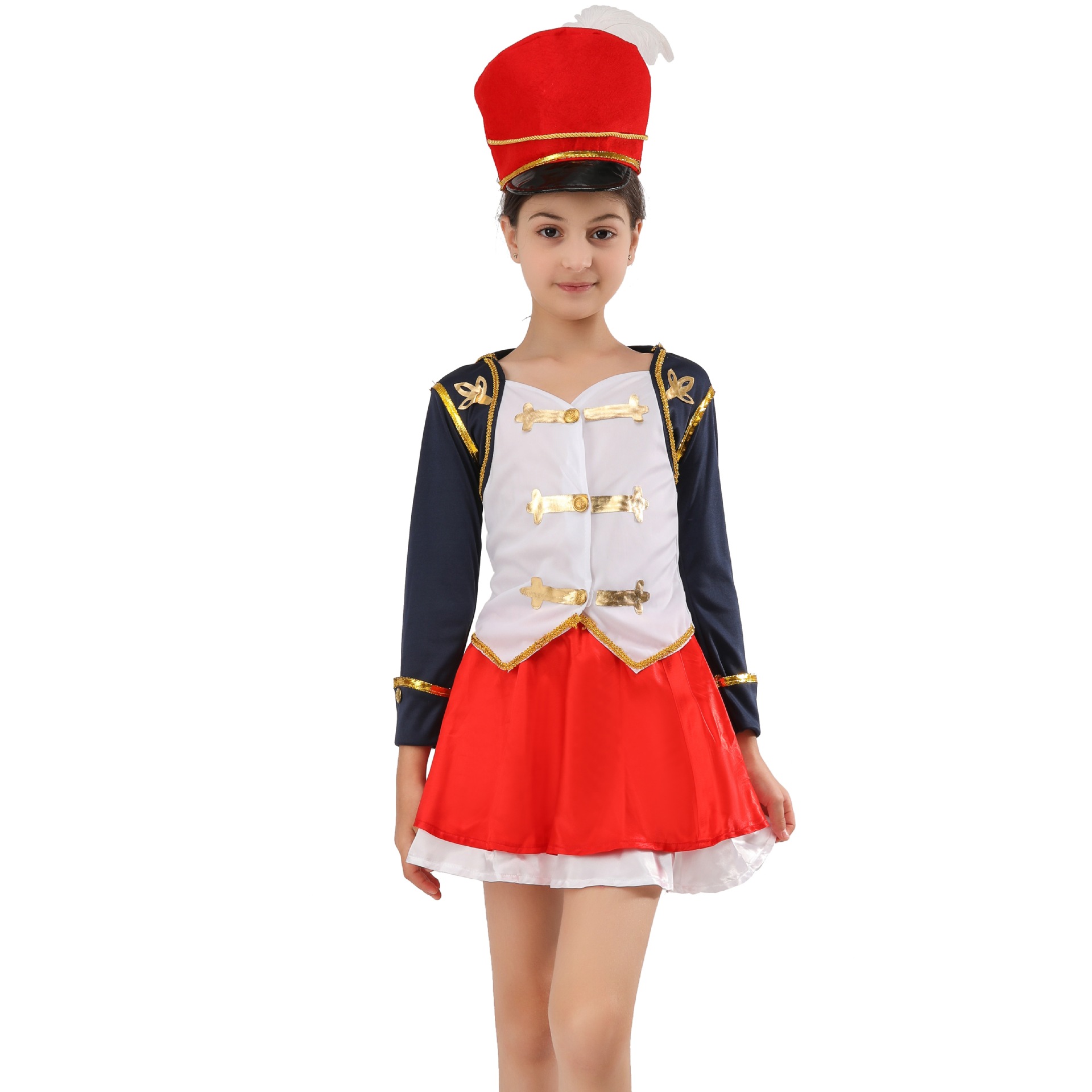 子供の太鼓隊の服装の演出服の男女の小中学校の儀式チームの太鼓のバンドは国旗掲揚の儀式の幼児を演じます。