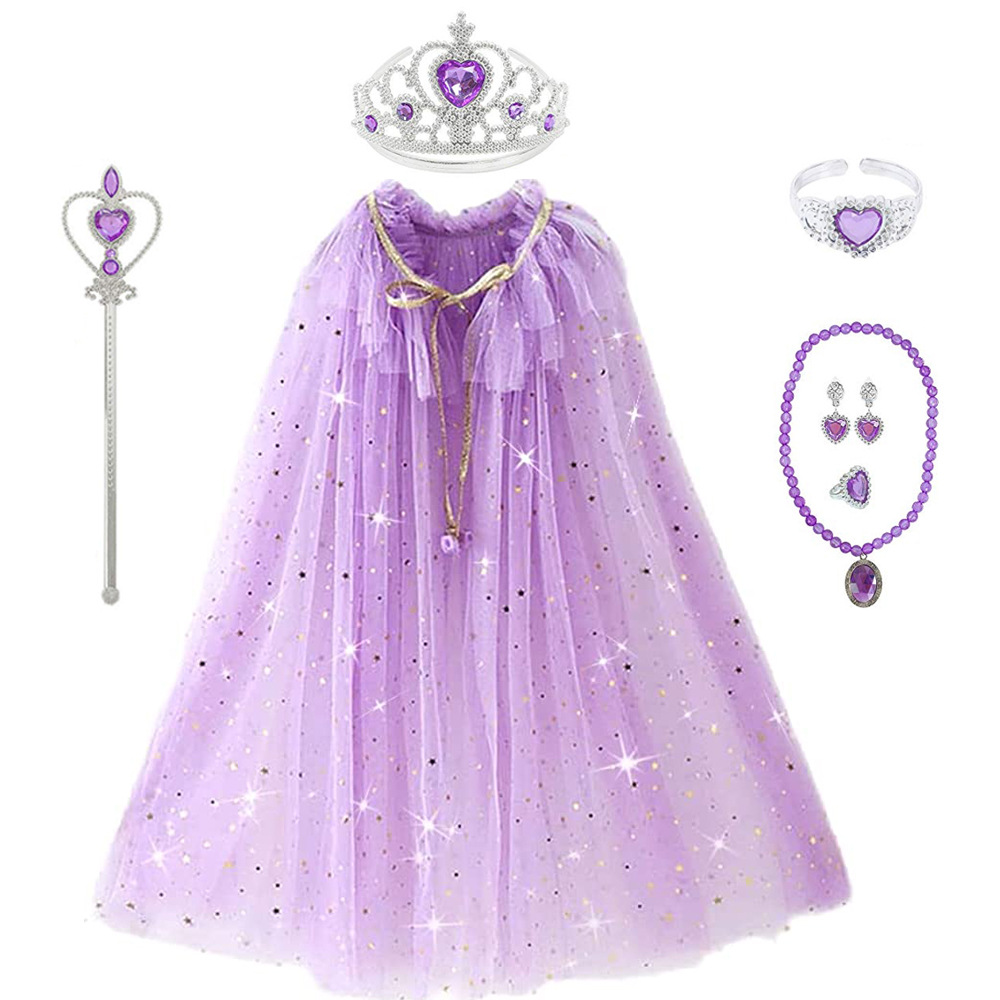 女の子の氷雪の女王の王女のマントのスーツの柔らかい糸の純色の星のスパンコールの外でマントの女の子の王女のマントの糸を掛けます。
