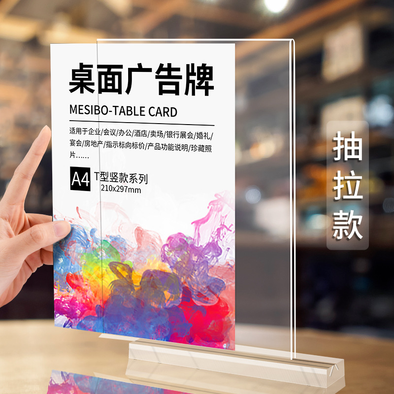 アクリル台カードt型台牌立牌デスクトップ展示牌水牌メニュー牌両面透明a4引き出し台札