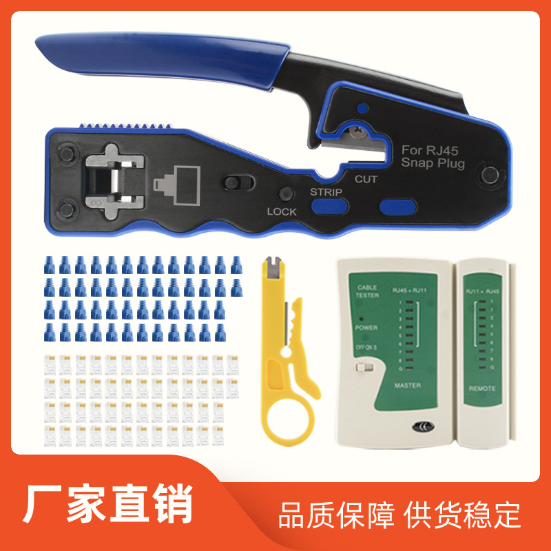 クロスボーダー貫通穴ワイヤーストリッパー穴あき8芯クリスタルヘッドネットワークRJ45ネットワークケーブル電話ユニバーサル圧着ペンチセット