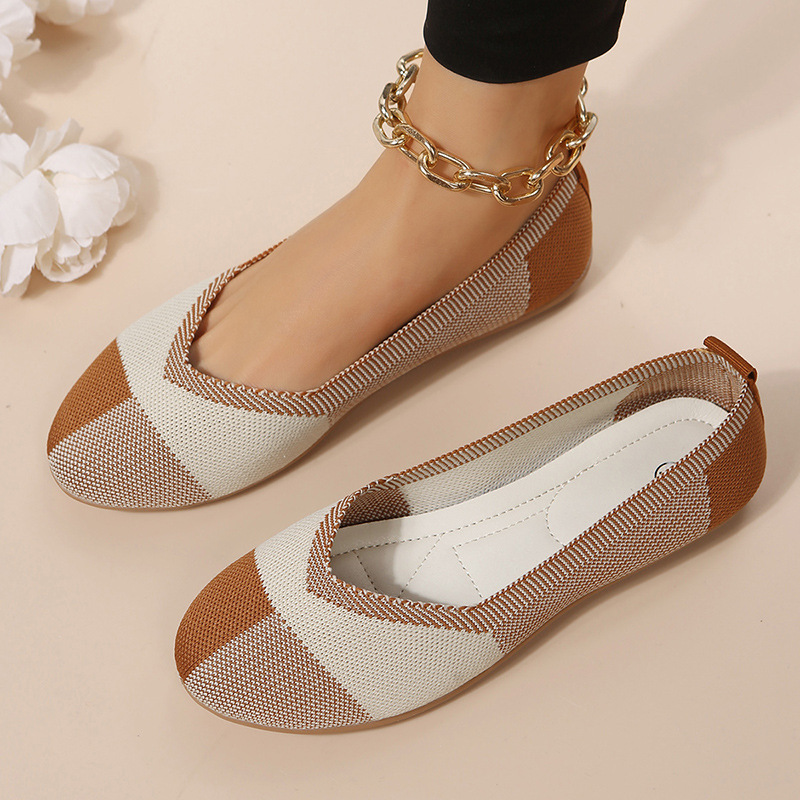 クロスボーダーの外国貿易の平底の通気性の飛織の靴の女性は色の浅い口の丸い頭の怠け者の楽福の靴をつづり合わせます。