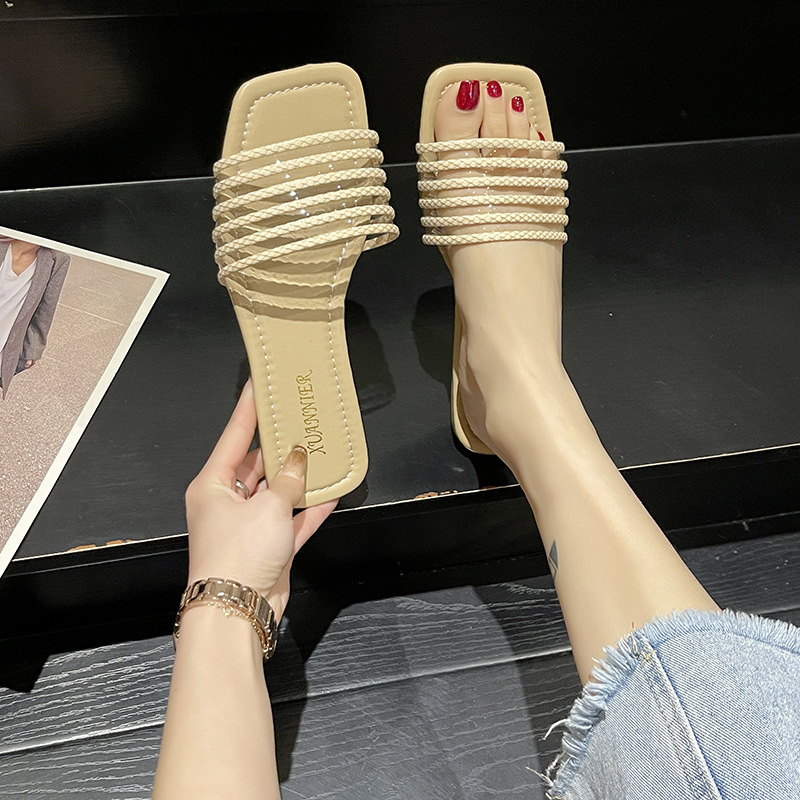 2023韓国版の外国貿易の大きいサイズの平底の1字のスリッパの女性の外は方の頭のドリルを着て冷たいスリッパのslipperを編みます。
