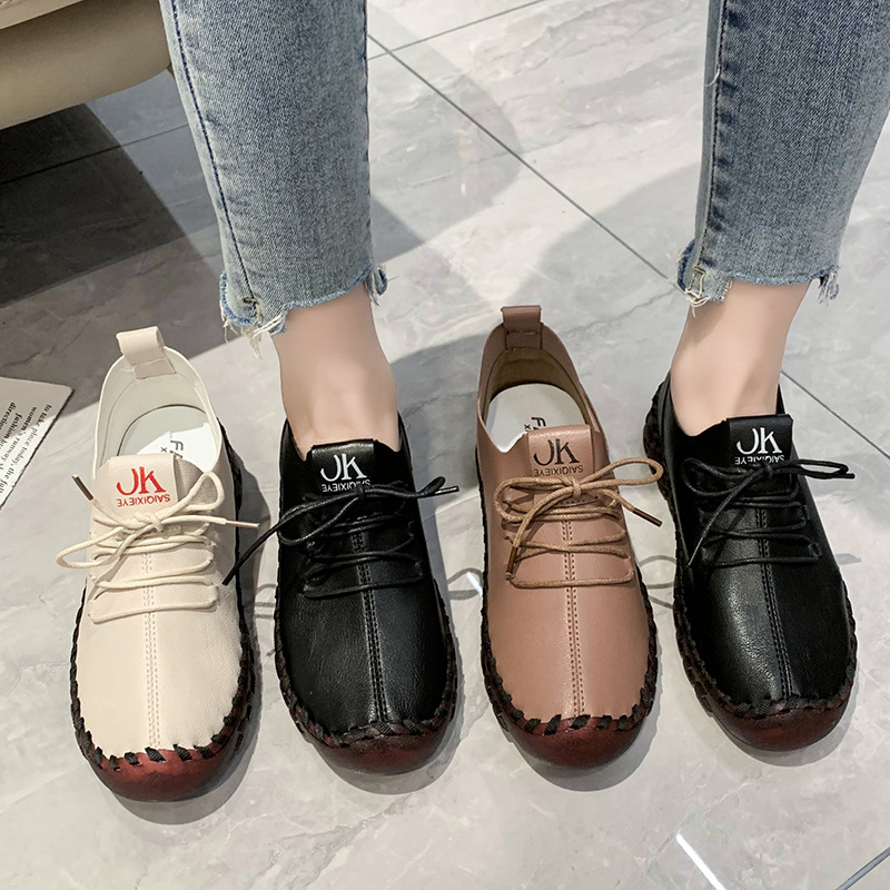 国境を越えた手縫い糸の柔らかい底の母靴の女性の新しい独立した駅の平底靴のカジュアルシューズのぞき