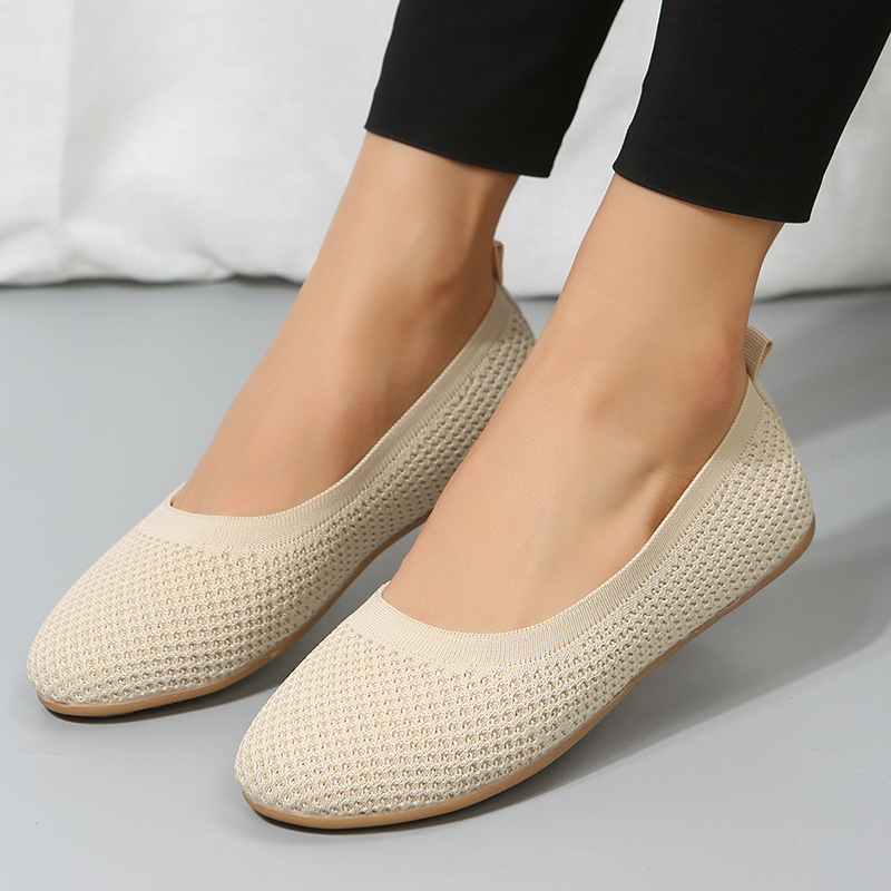 日韓の外国貿易の飛織の平の通気性の靴の女性の浅い口のメリヤスの低いのは四季の仕事の靴の老朽化を手伝います。