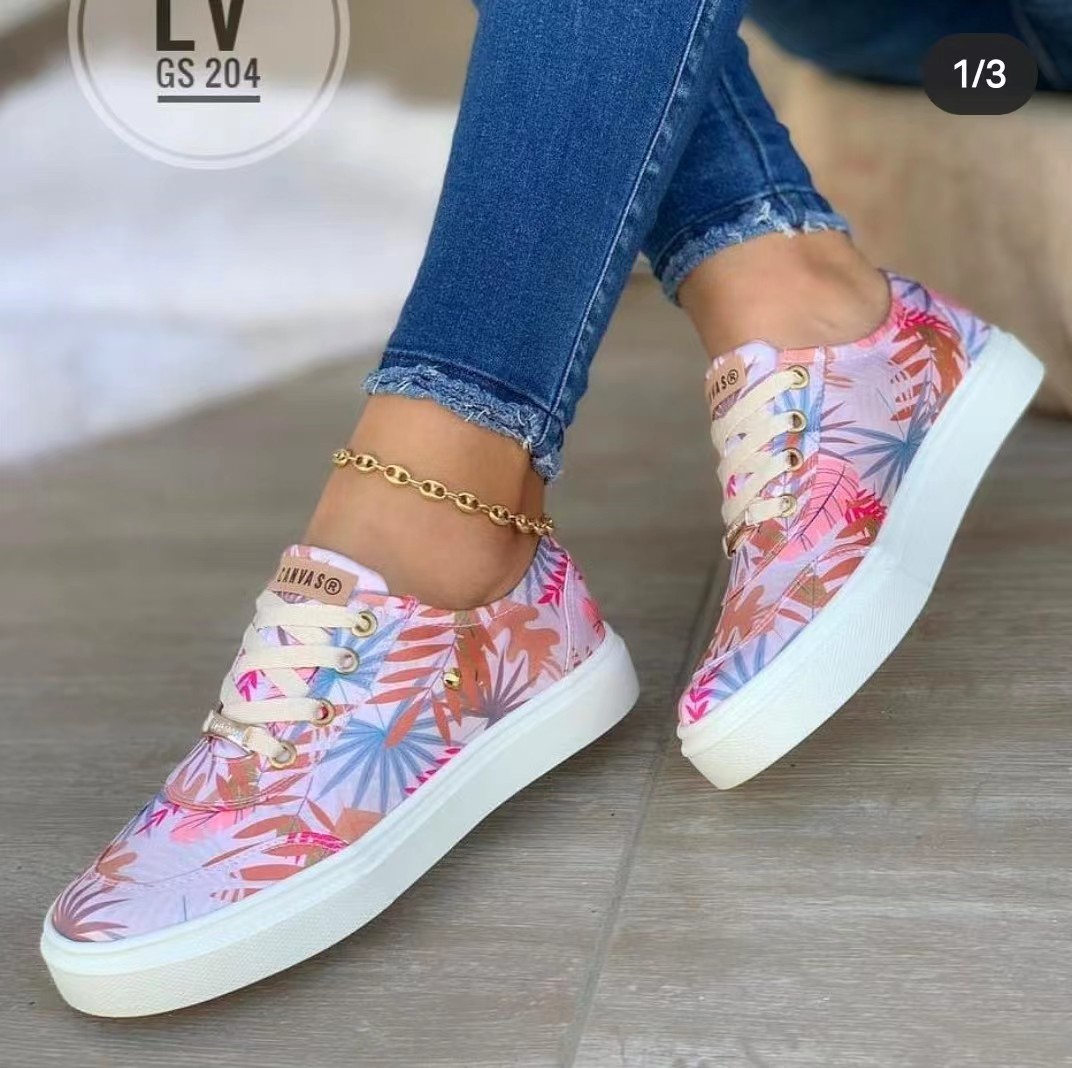 日韓の外国貿易の大きいサイズの丸い頭の低い靴の女性のプリントの平底のひもの厚い底の板の靴のwomen's shoes