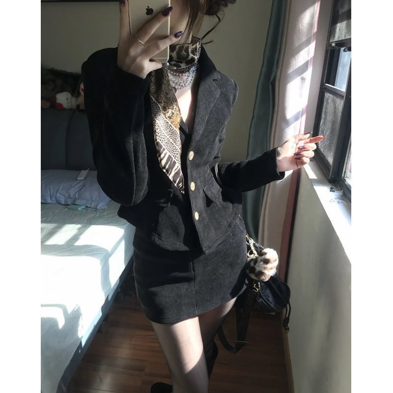 スーツの女性2025早春の新型韓系の香風は腰を収めてやせている短いスーツのコートの高腰の半身のスカートの潮を現します。