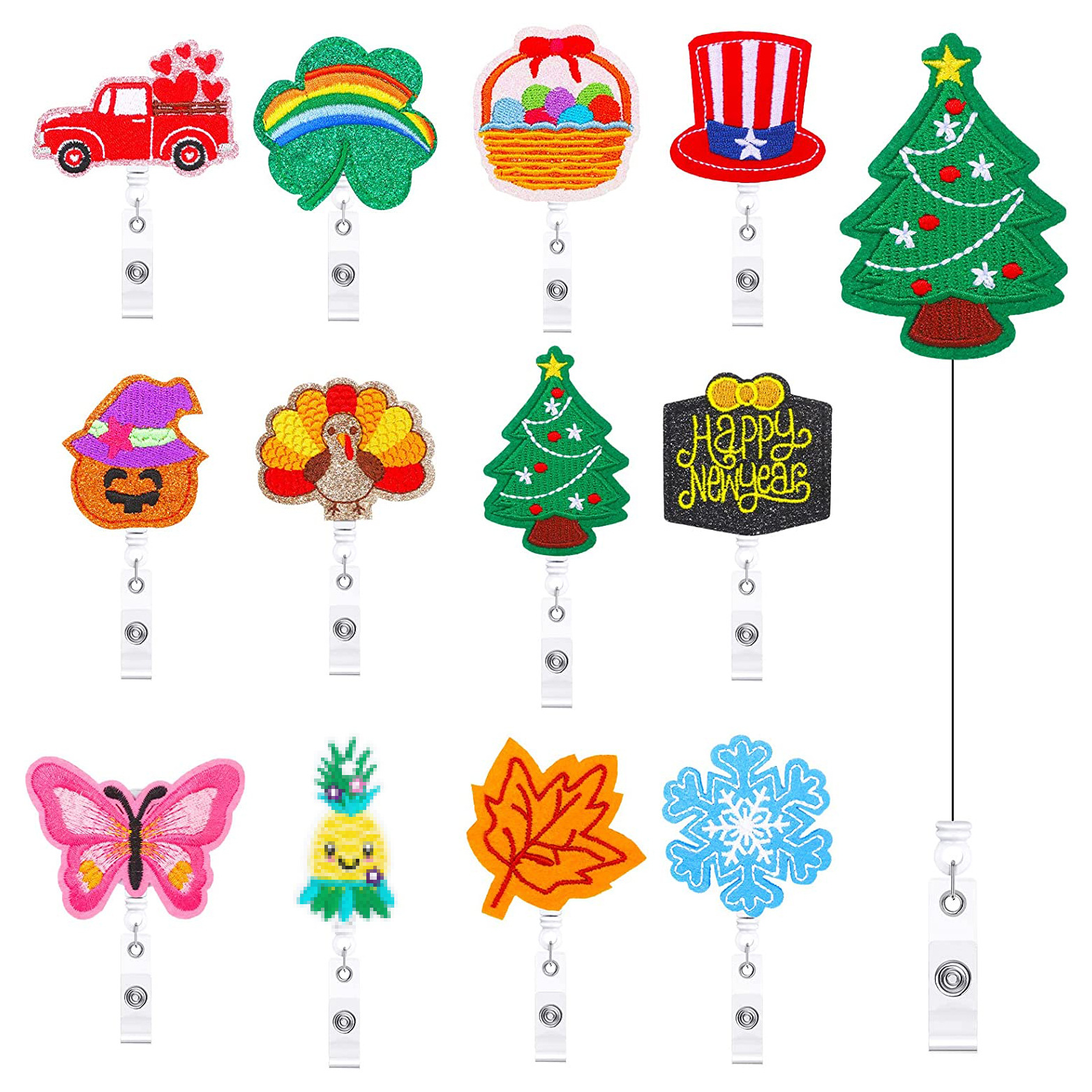 18点セット祭りシリーズスケーラブル回転ドローイング刺繍フェルトバッジリールプレゼント