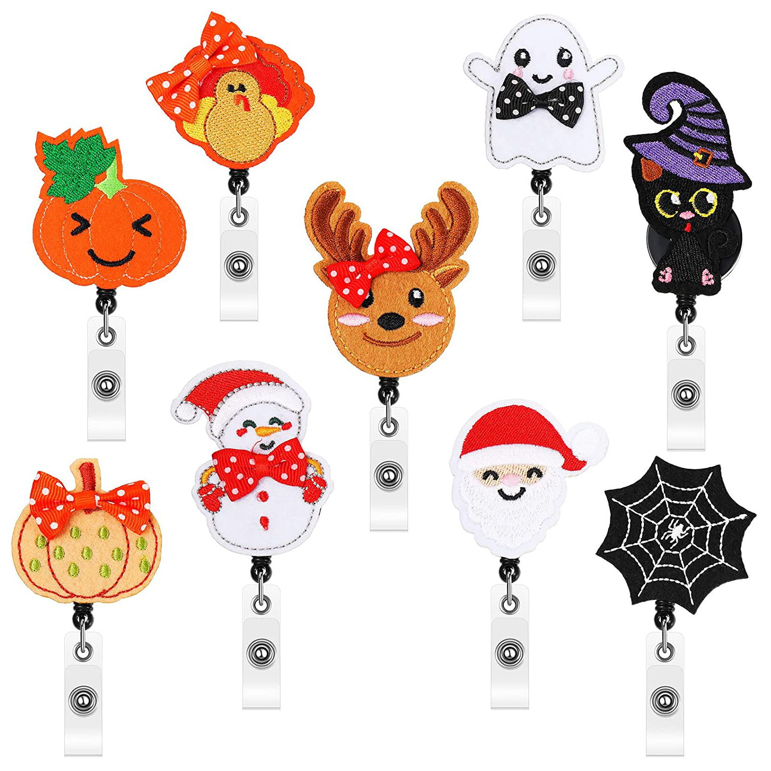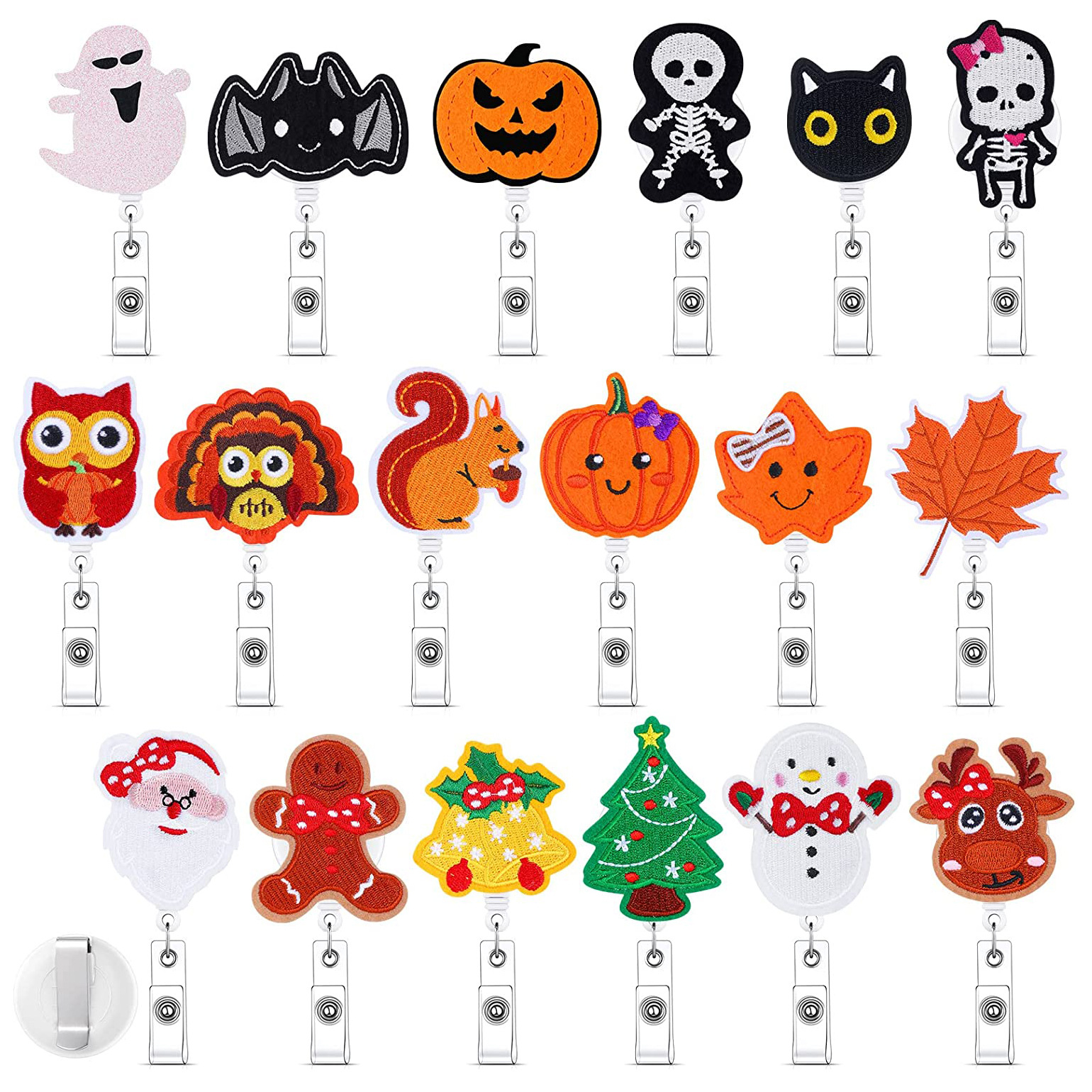 ハロウィーンかわいいミイラ頭蓋カボチャ手作り刺繍伸縮可能な高反発バッジリール