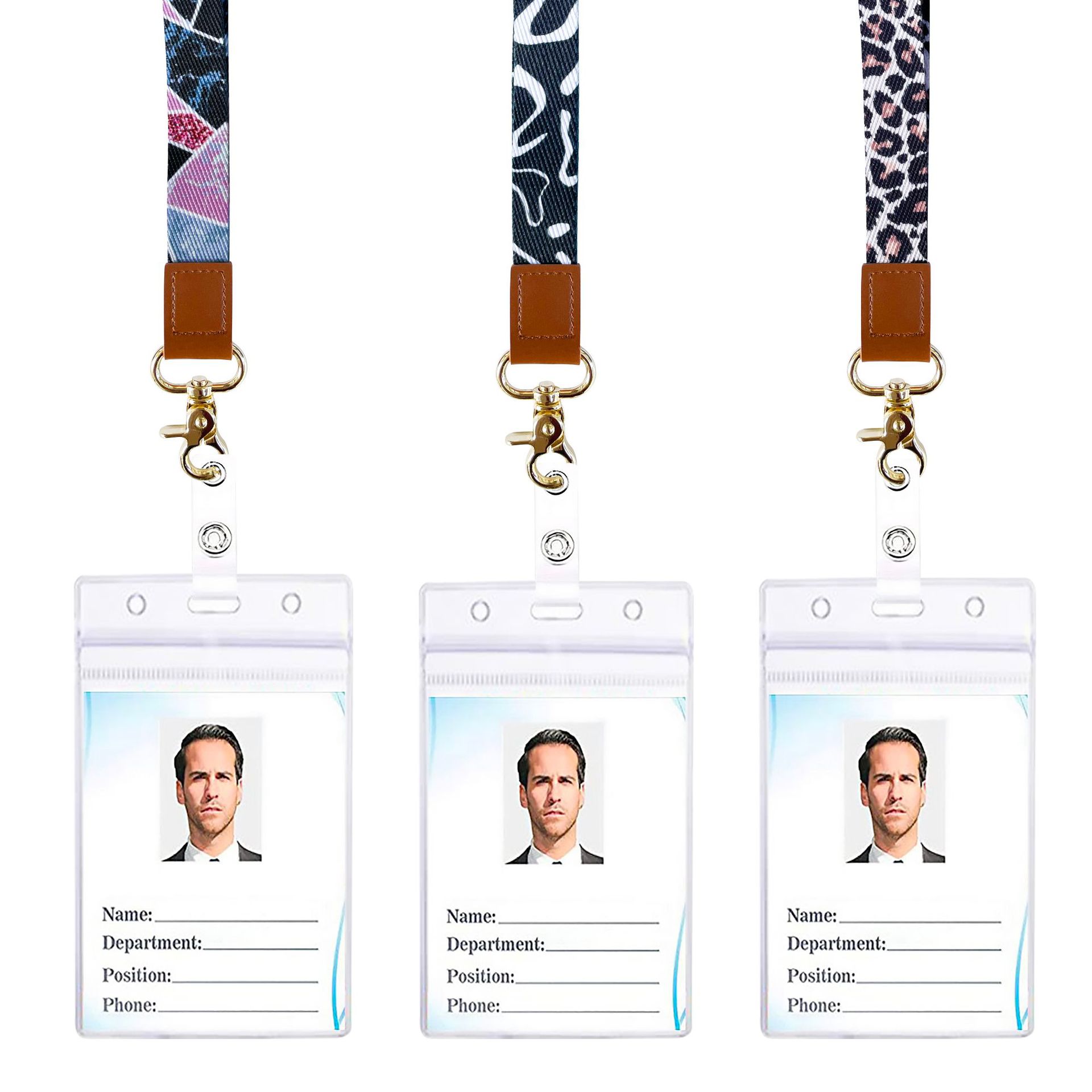 韓国式の美しい小さい花の乳の牛の紋様のプリントのポリエステルの証明書は掛け縄のpvcの透明な身分証のカードカバーを掛けます。