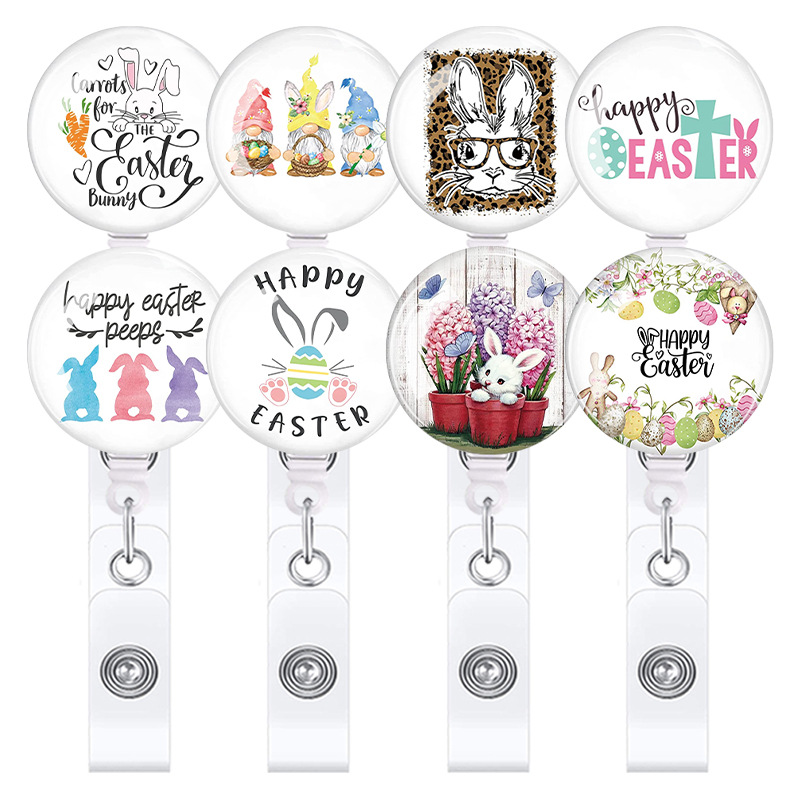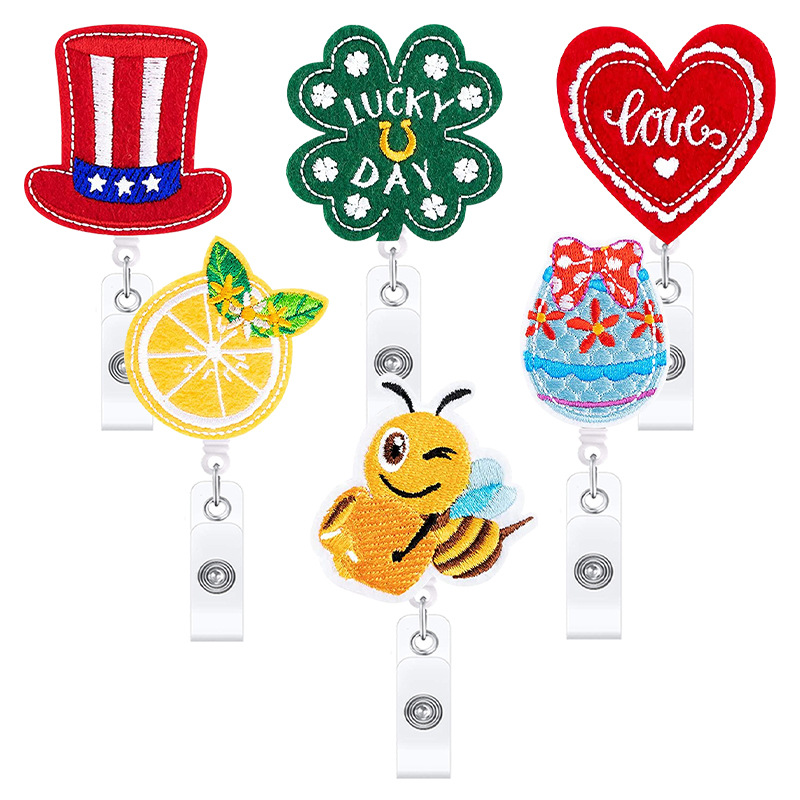 手刺繍フェルトミツバチカラーエッグレモンクローバー伸縮式回転プルバッジリール