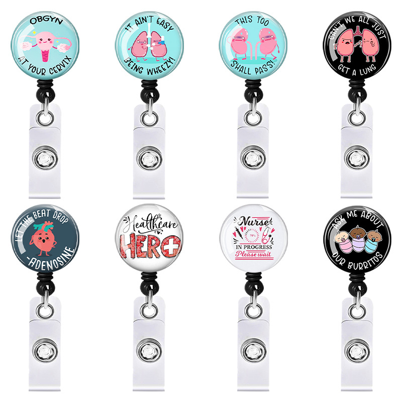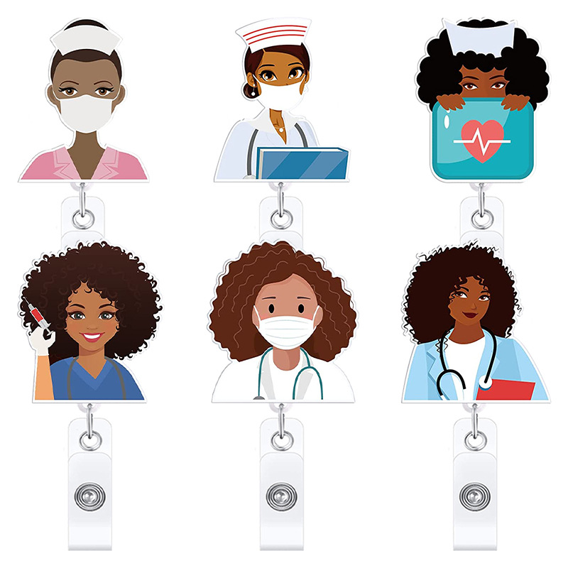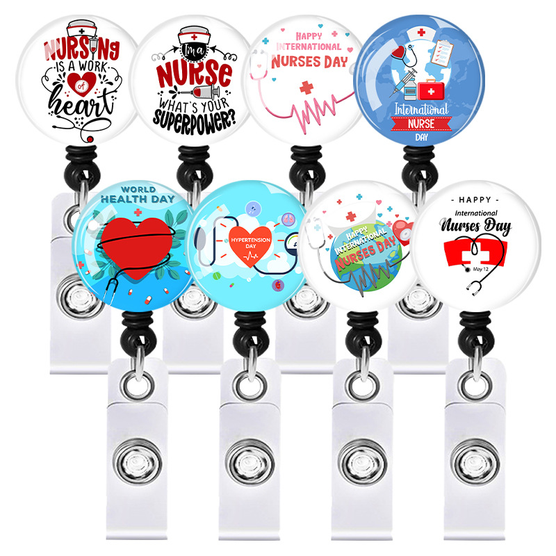 ABS滴ゴムシール漫画手描き愛聴診器看護師帽地球伸縮回転易拉得証明書ボタン