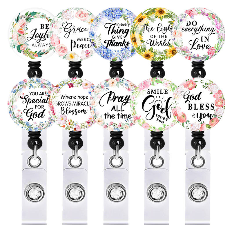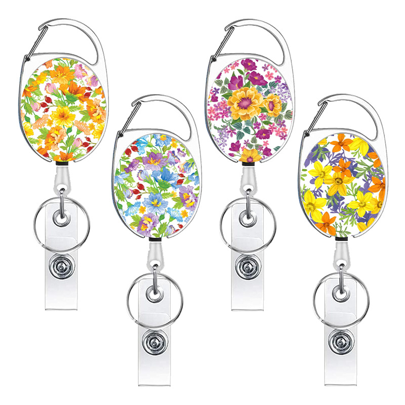 古典的な白い小さな新鮮な花は亜鉛合金を引きやすい伸縮可能なバッジリール