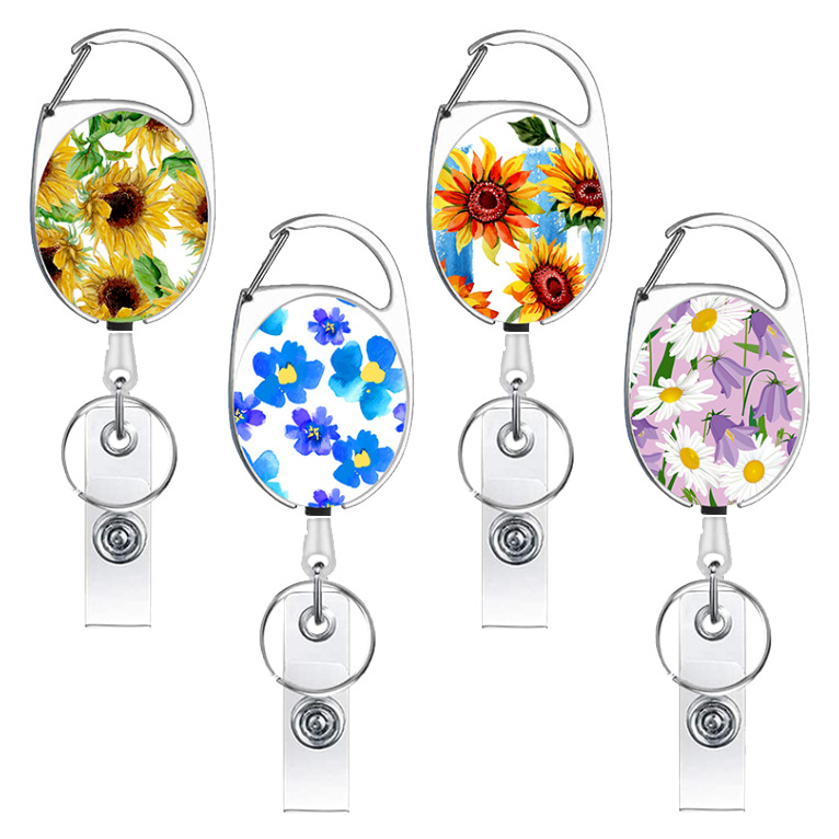 白い亜鉛合金油絵風プルオーバーしやすいフレッシュひまわりデイジー伸縮性回転プルオーバーエンブレムリール