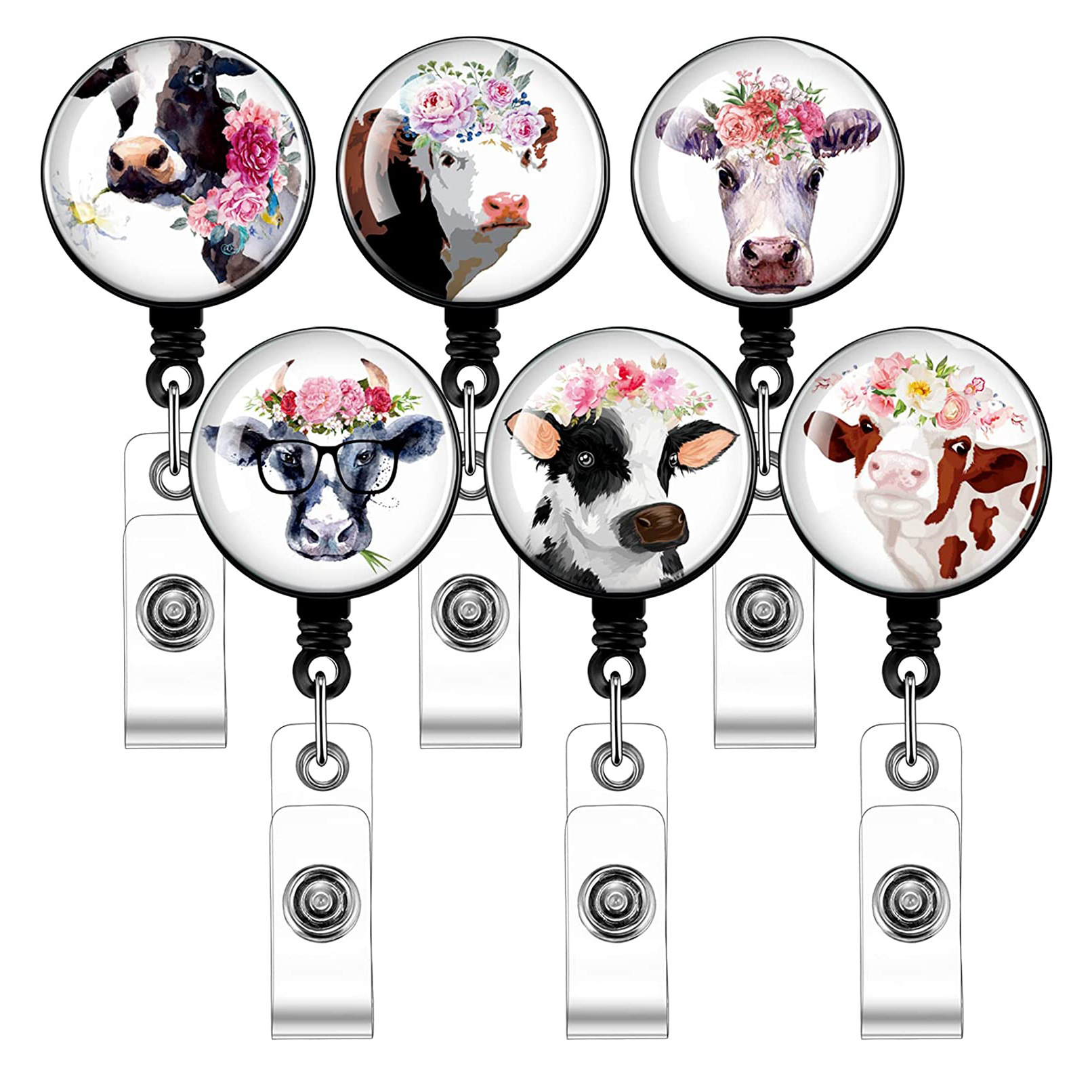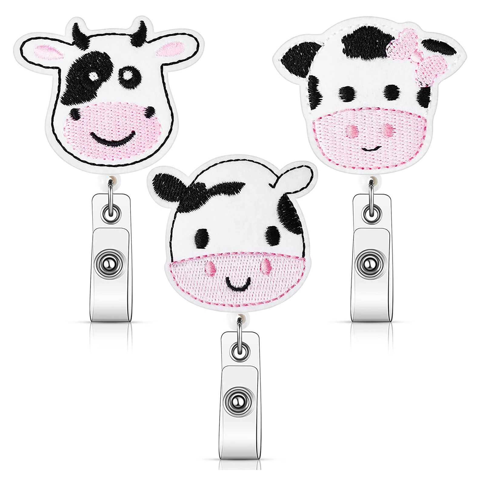 アニメかわいいフェルト白黒乳牛伸縮可能な回転は手刺繍バッジリールになりやすい