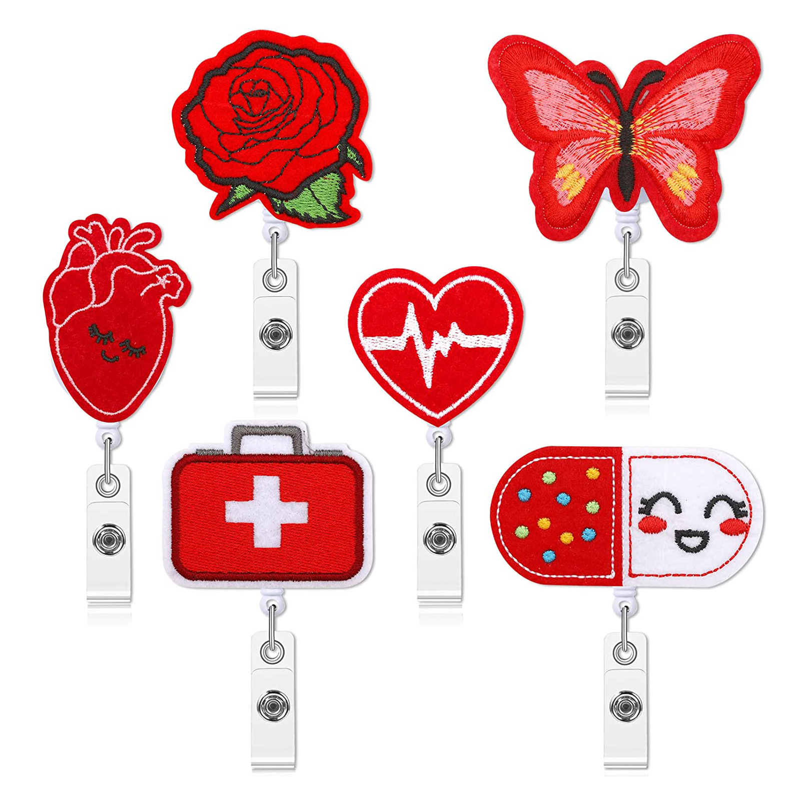 バレンタイン手作り刺繍赤いバラハート蝶伸縮式回転プルアウトバッジリールプレゼント