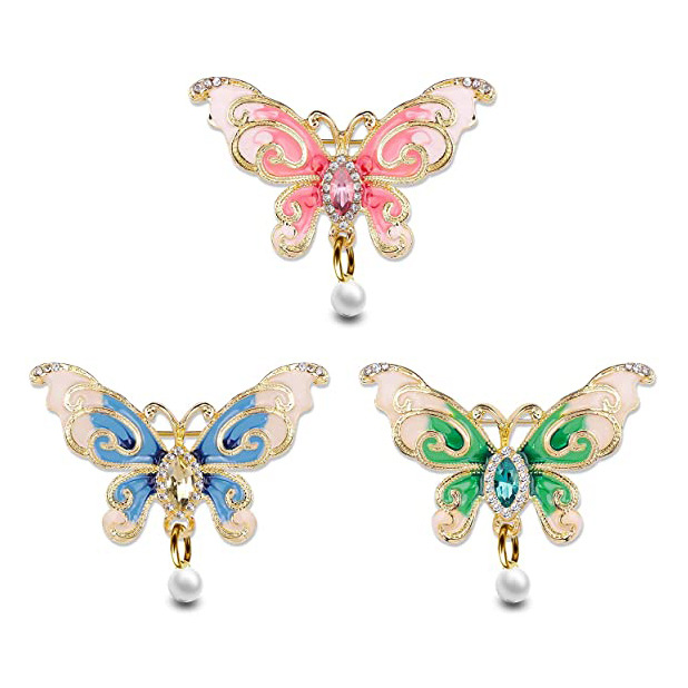 小さな新鲜なグラデーション滴油合金蝶ラインストーンパッチ金属ブローチクリスタル蝶ペンダントレトロピン