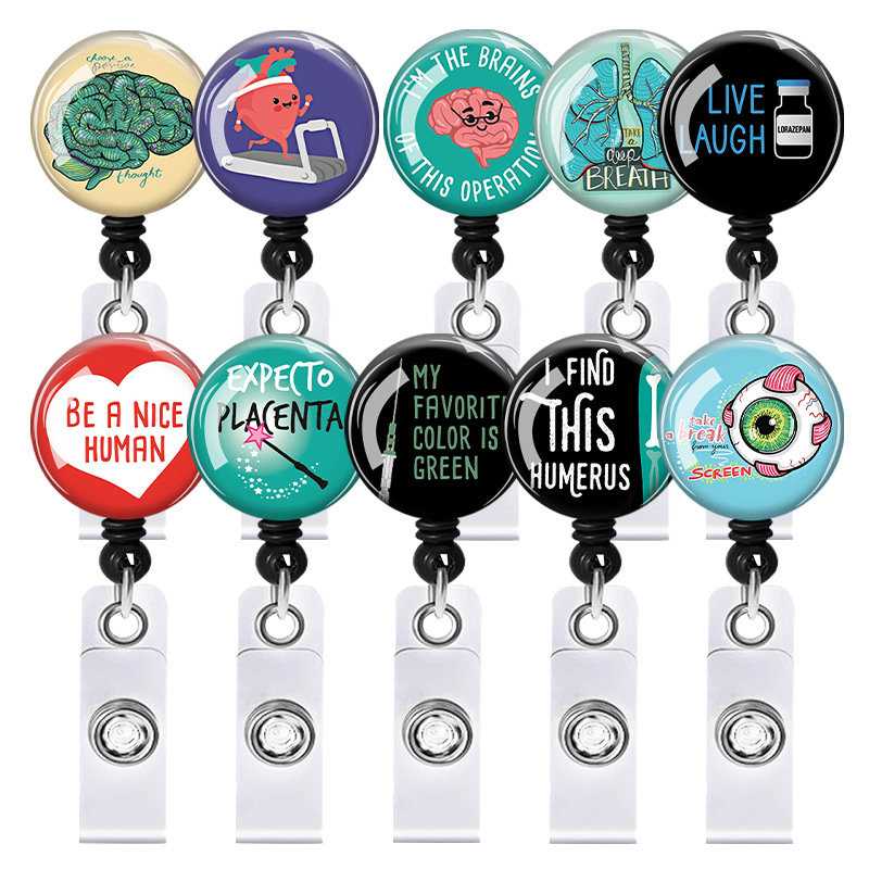 全平面ドリップパッチ手描き心臓脳子宮針管伸縮可能な回転バッジリール