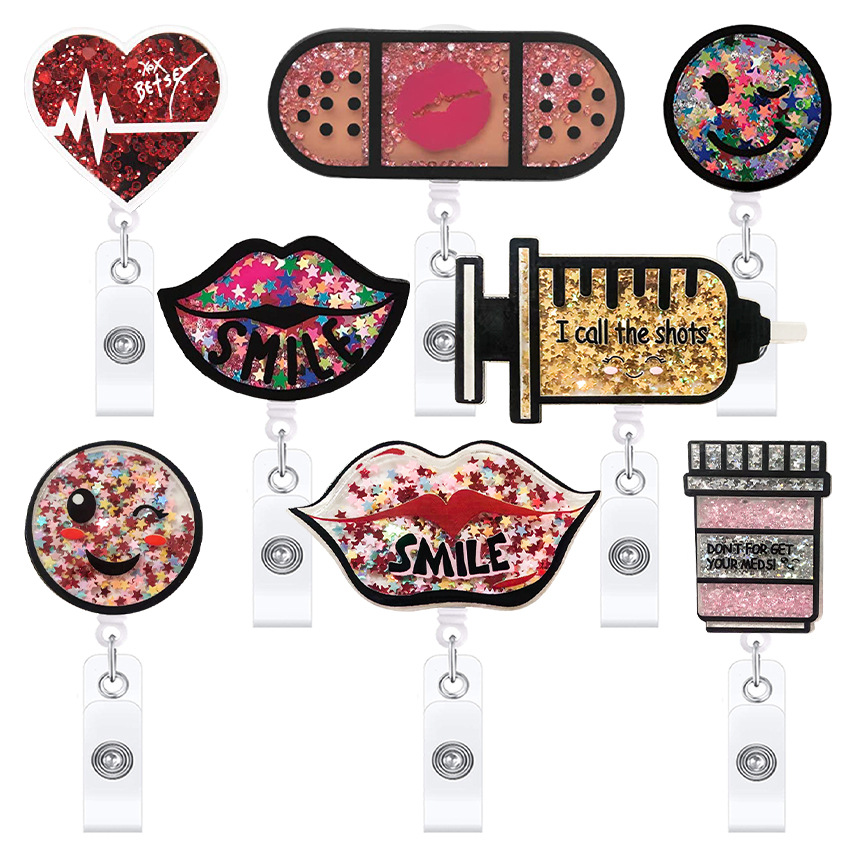 Pvc中空金葱流砂閃粉はかわいい表情の唇の愛が伸縮して証明書のボタンを引きやすい