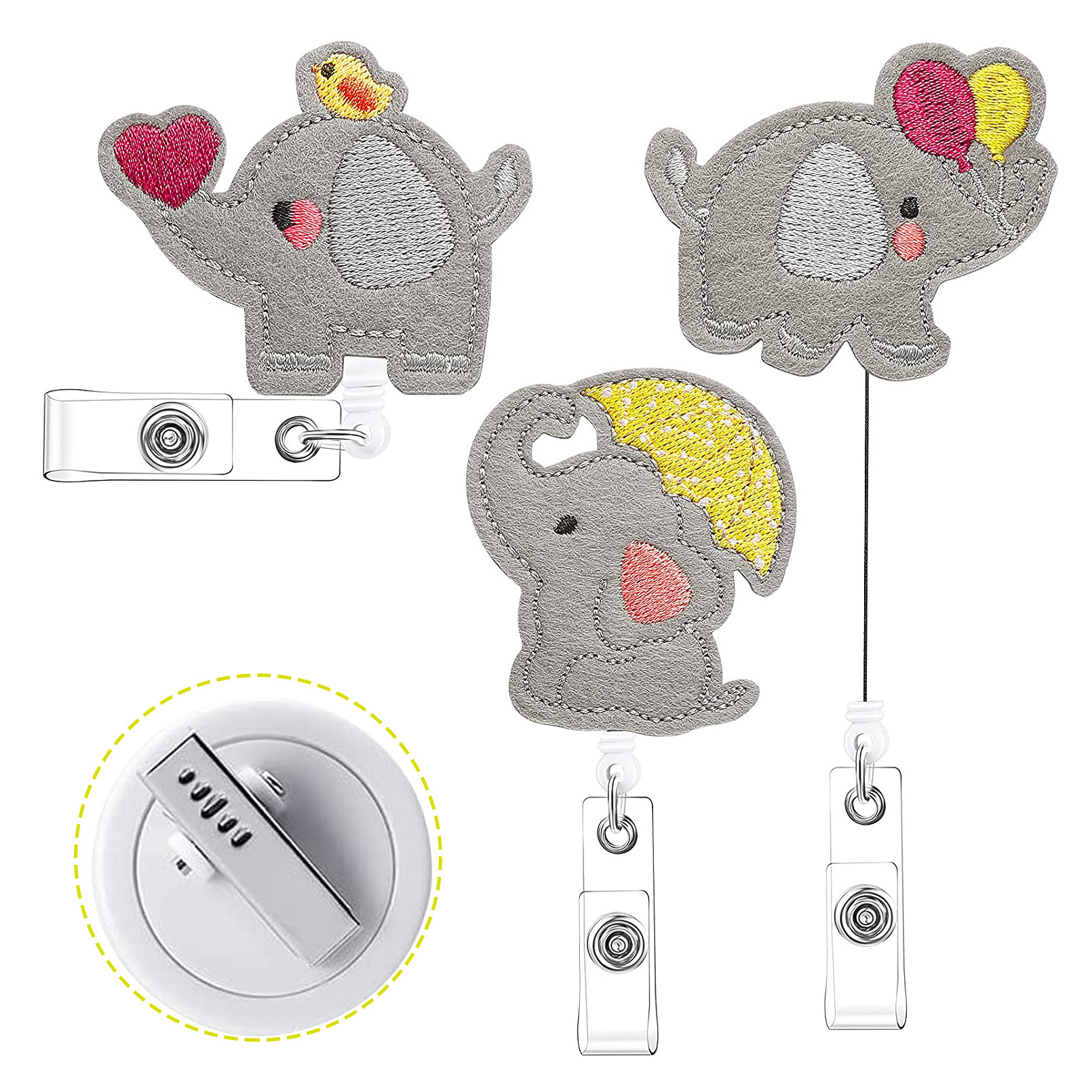フェルト刺繍グレー傘付き小象引きやすいボタン