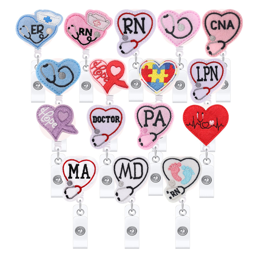 フェルトのピンクの愛の聴診器はボタンを引きやすいです。