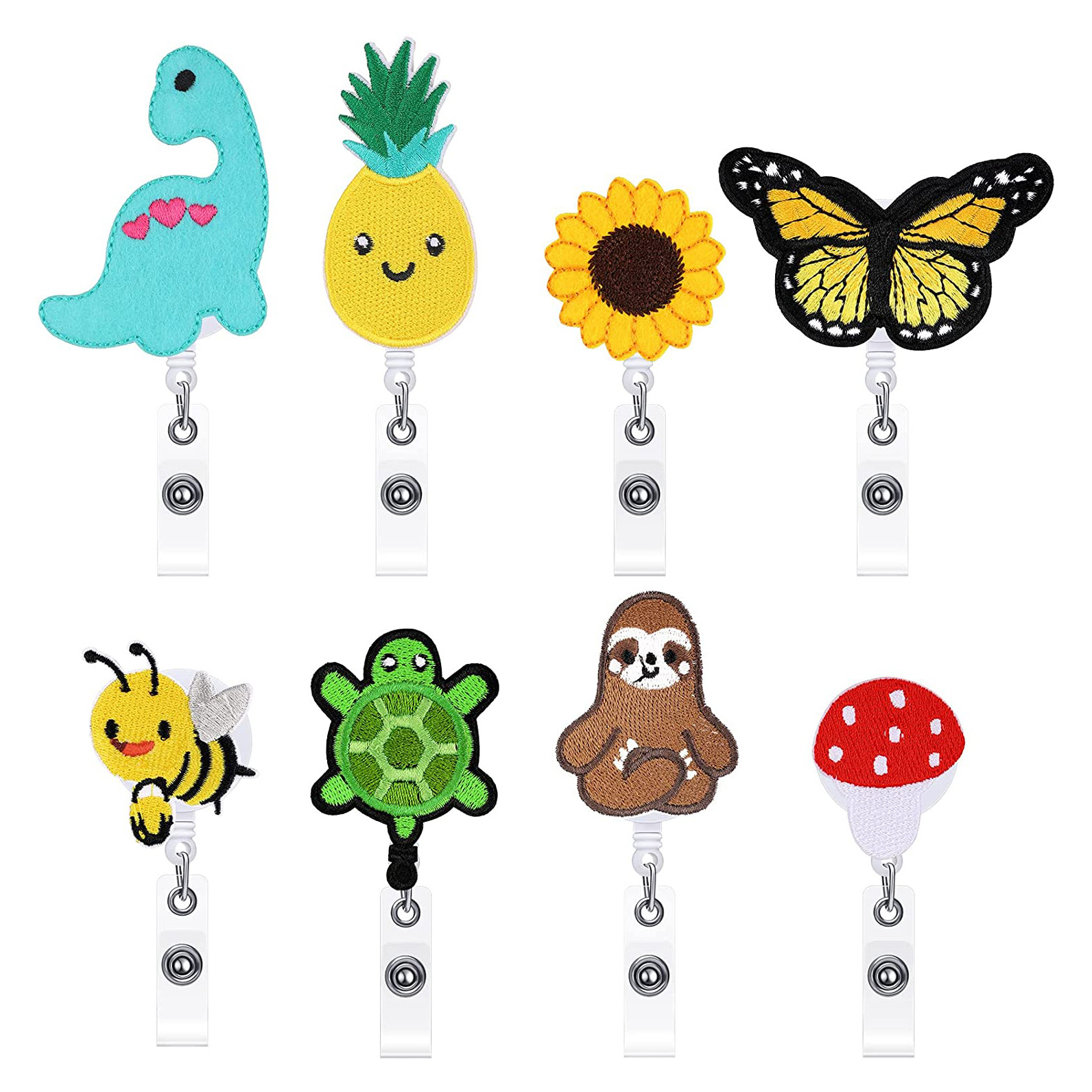かわいい漫画の刺繍の动植物の引きやすいバックルのカメの蝶の太阳の花の伸缩可能な引きやすいバッジの巻き枠