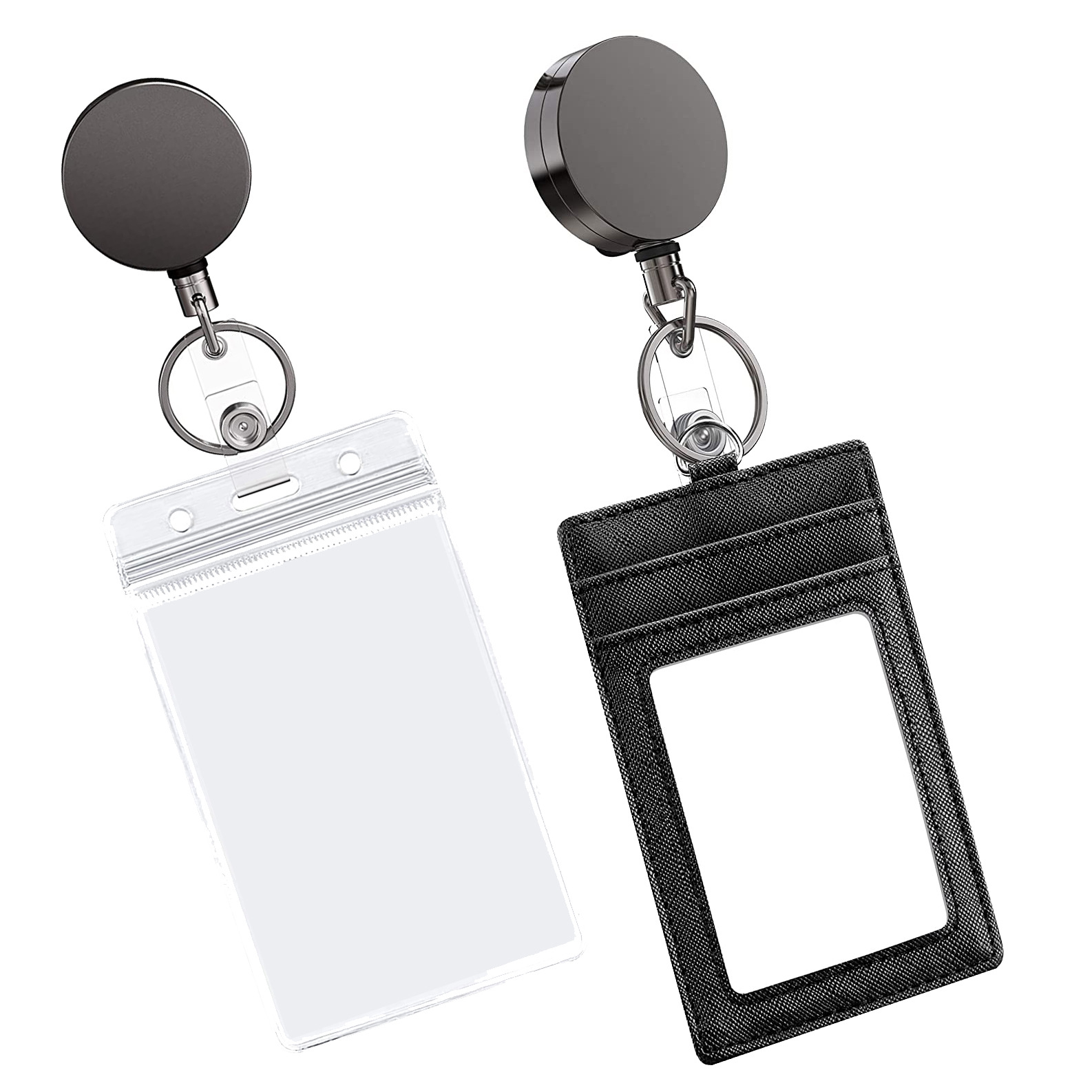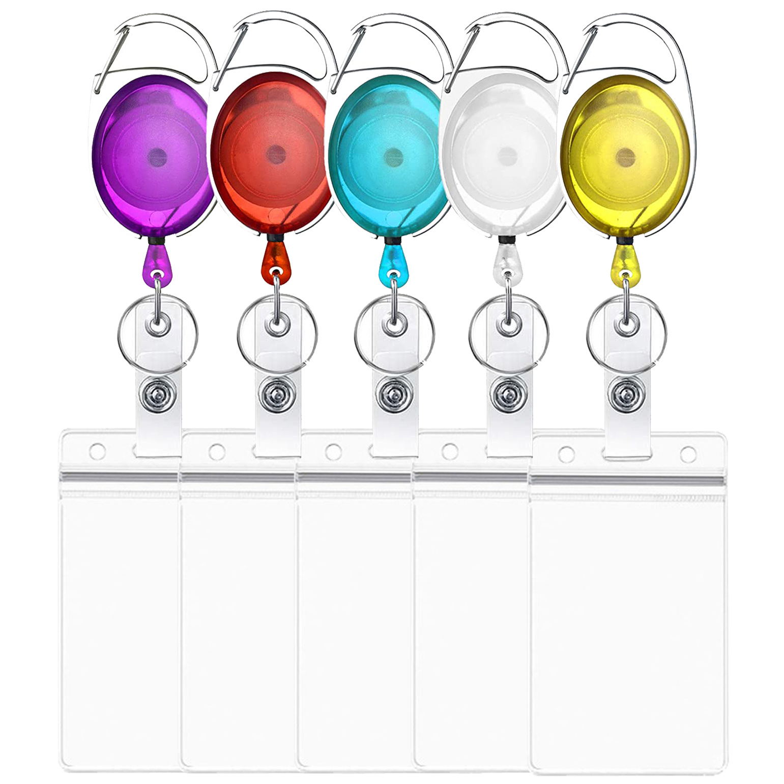 PVC防水透明証明書カードカバー取り外し可能な証明書ロープは伸縮して亜鉛合金を引きやすい