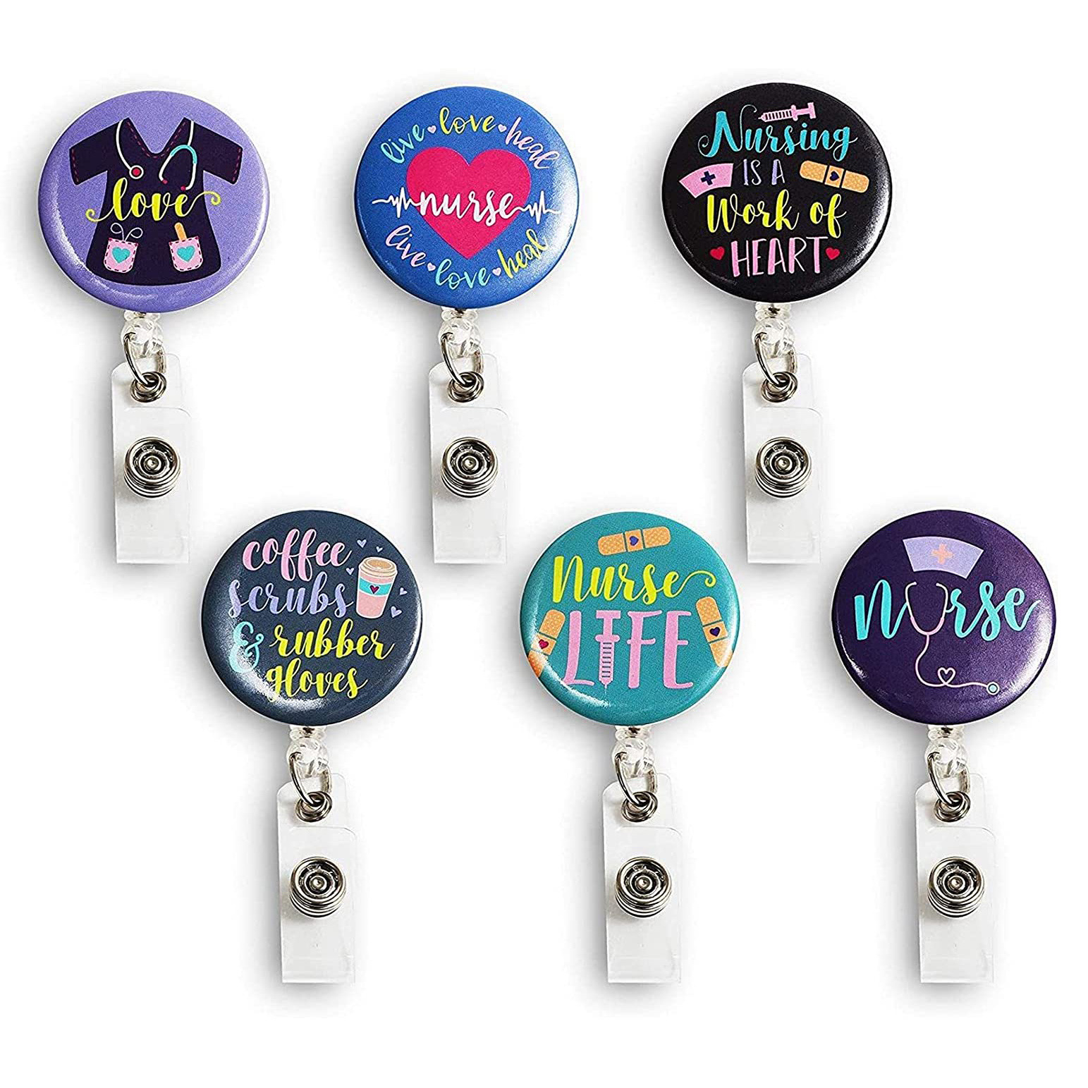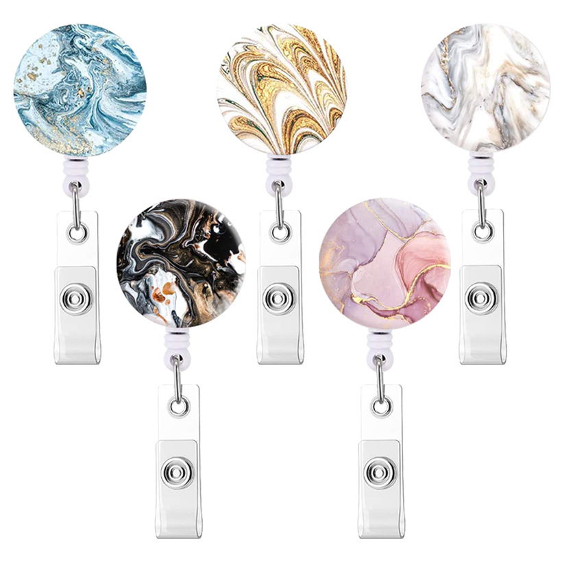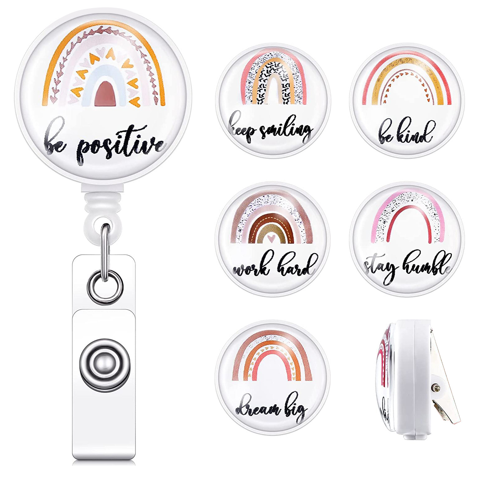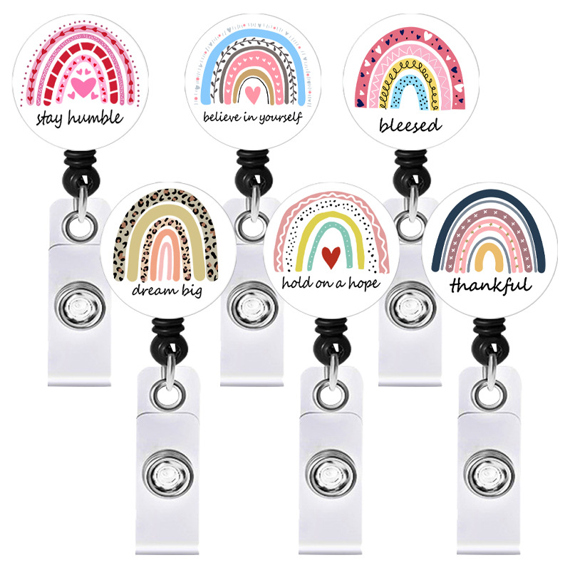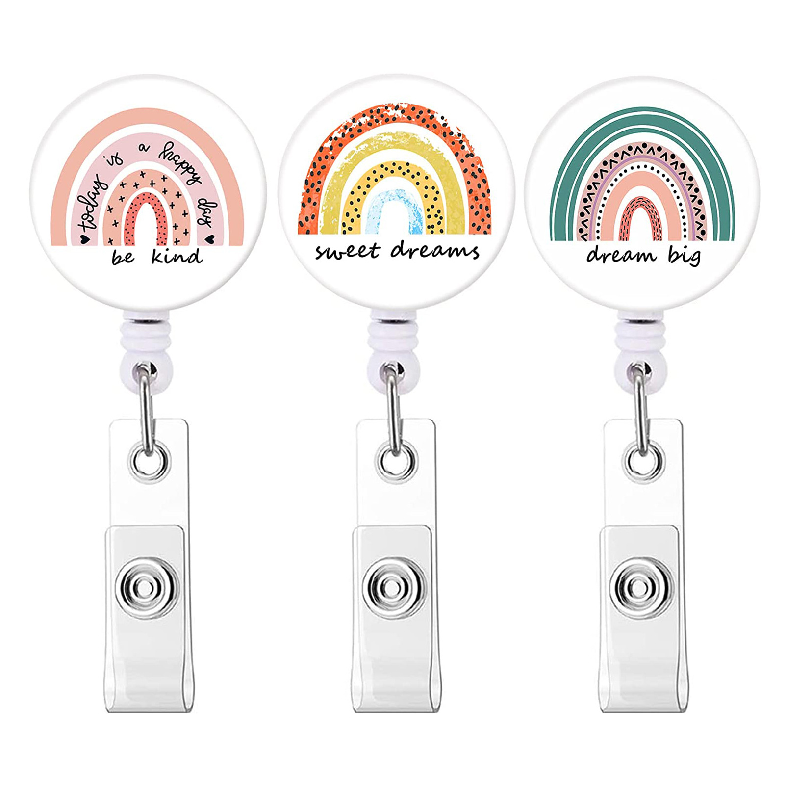 Absドリップパッチの小さい清新な虹のプリントは引きやすいです。伸縮可能な回転ワニのクリップidカードの証明書のボタンです。
