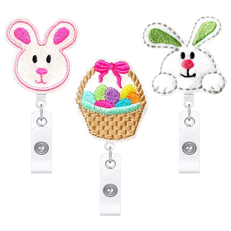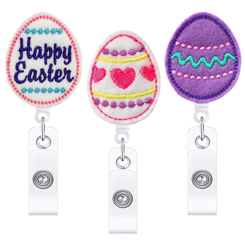 イースター手作り布芸フェルト刺繍プルタブ付き卵ウサギ伸縮回転プルタブ付きリール