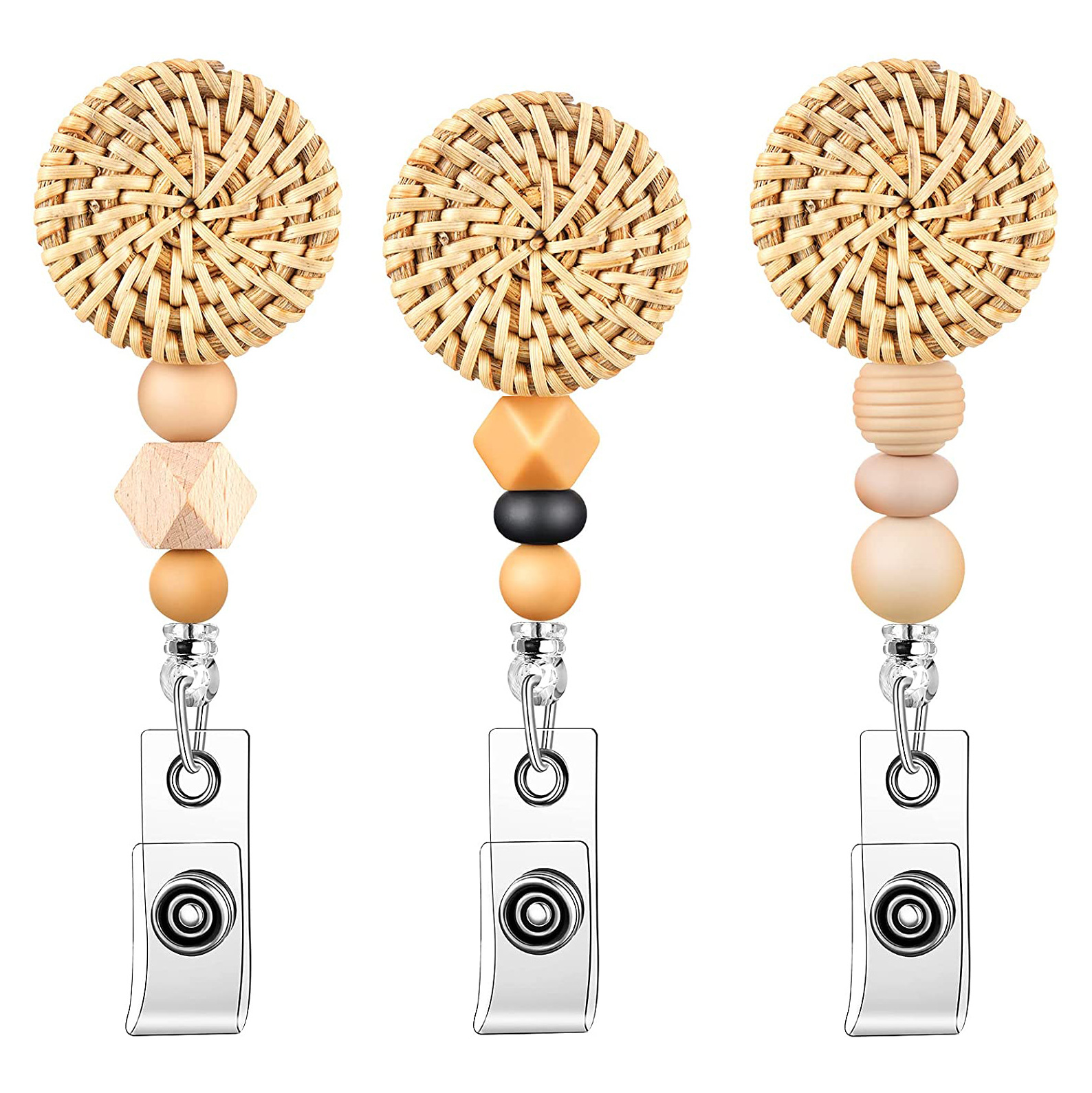創意的な円形の藤編みの引きやすいボタンはビーズの串が付いています。