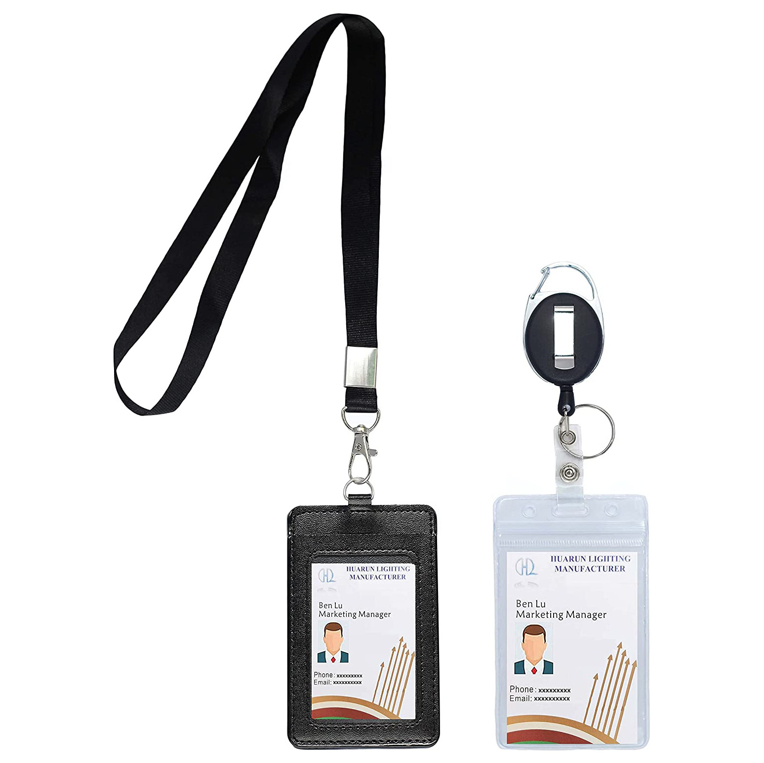 黒のストラップ純色亜鉛合金伸縮可能な引きやすいpu革製の証明書セットpvcカードセット