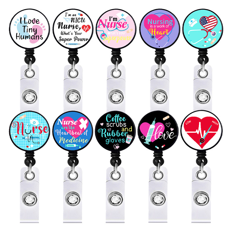 Absドリップパッチ引き込みやすいボタン幻色虹伸縮可能回転しやすいワニ挟みバッジリール