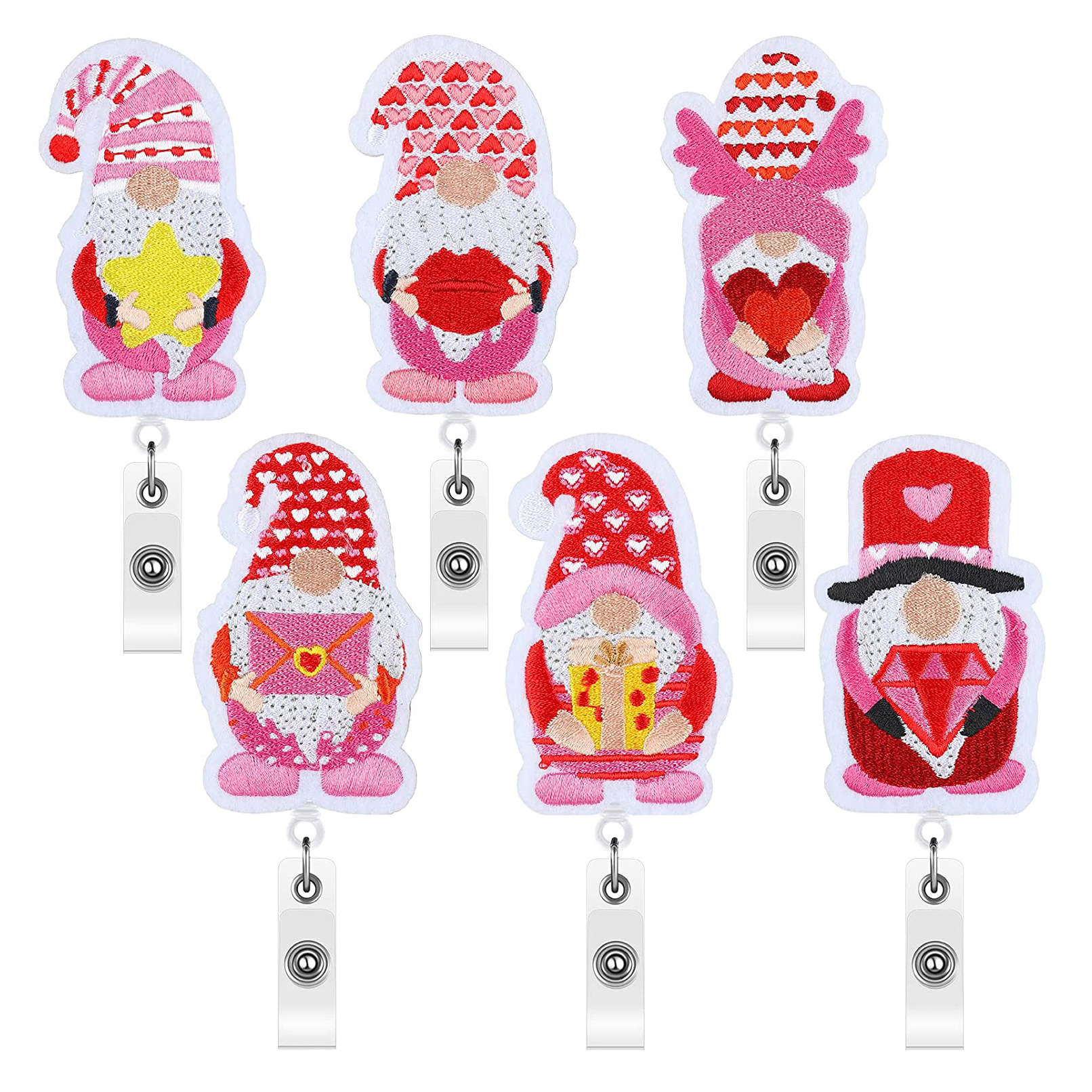 バレンタインフェルト刺繍ドワーフ伸縮可能な回転しやすいプルオーバーワニクリップバッジリール証明書バックルプレゼント