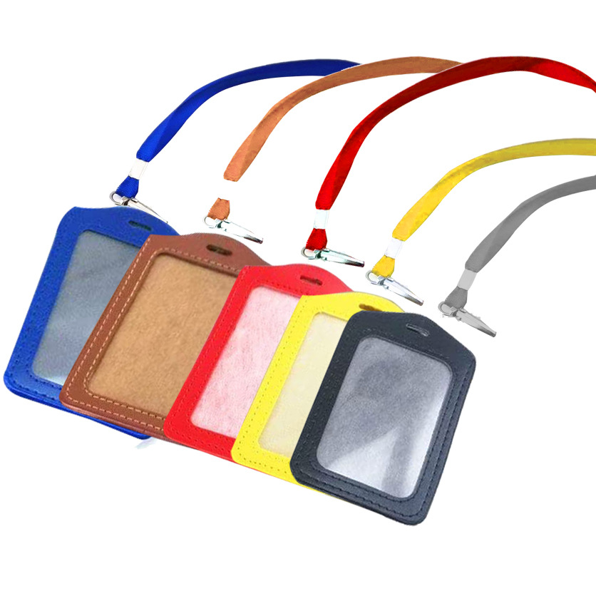 純色のカラフルなストラップ革証明書カードカバーPU革製胸カードID証明書カードのストラップ純色半透明カードカバー