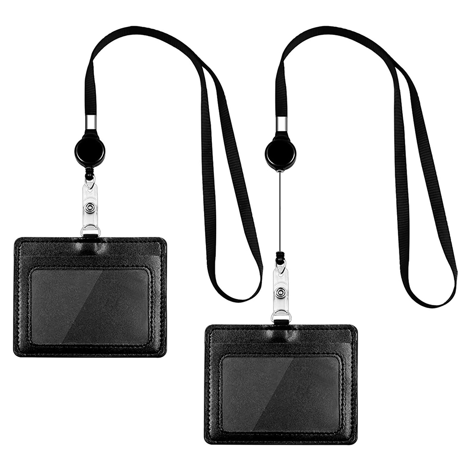純色のストラップの黒い円形は伸縮しやすいです。長方形のpu皮質はidカードを引っ張りやすいです。