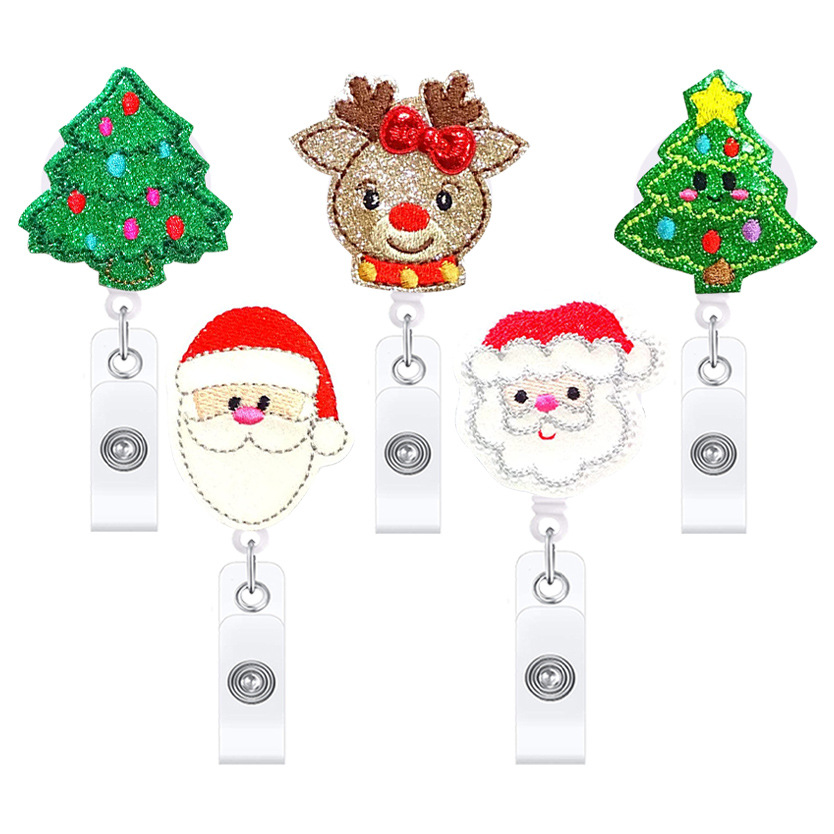クリスマス布芸フェルト刺繍引きやすいボタンサンタクロースの木回転伸縮ワニクリップ引きやすいプレゼント