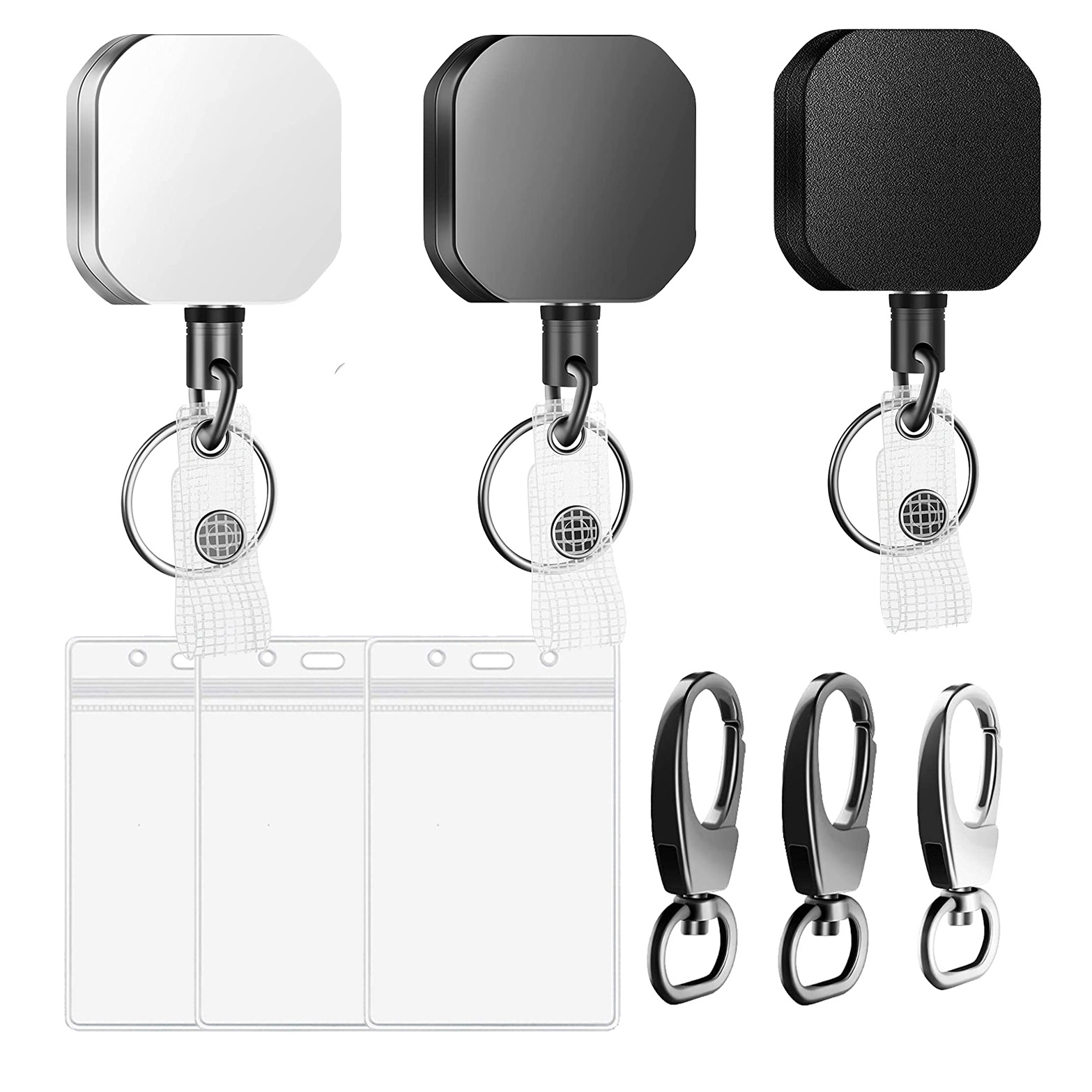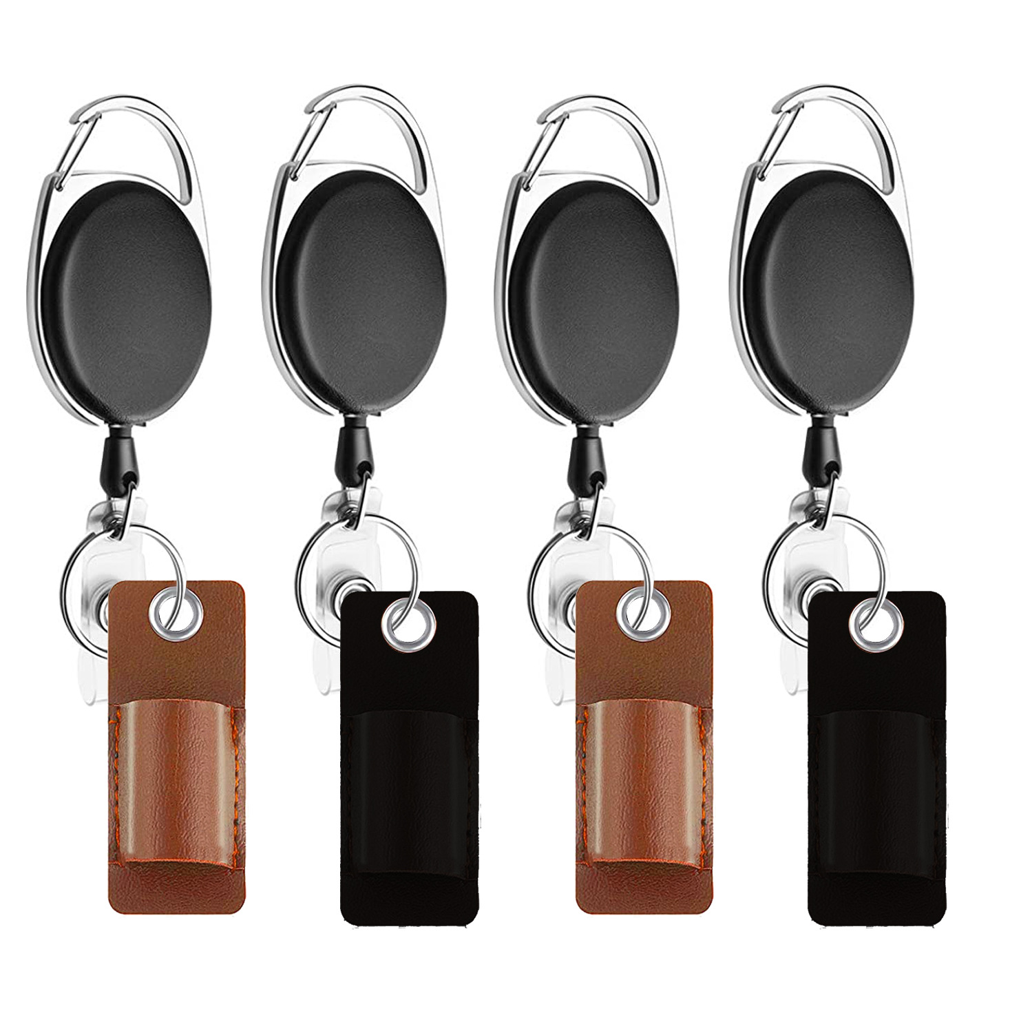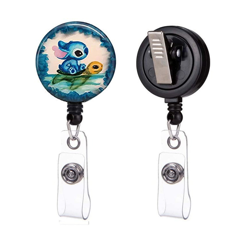 古典的な半透明pvcペンセット付き伸縮可能なバックル高弾力回転ワニクリップバッジリール