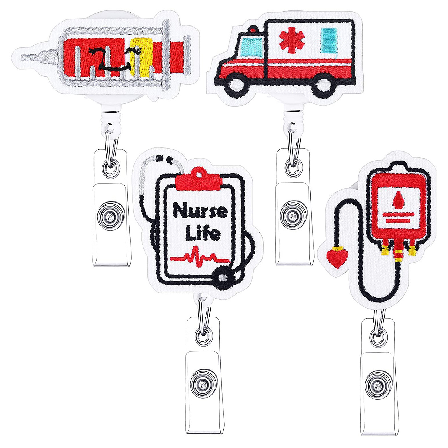 フェルト刺繍医療用プルタブ付き針管救急車伸縮式回転プルタブ付きワニクリップ証明書バックル