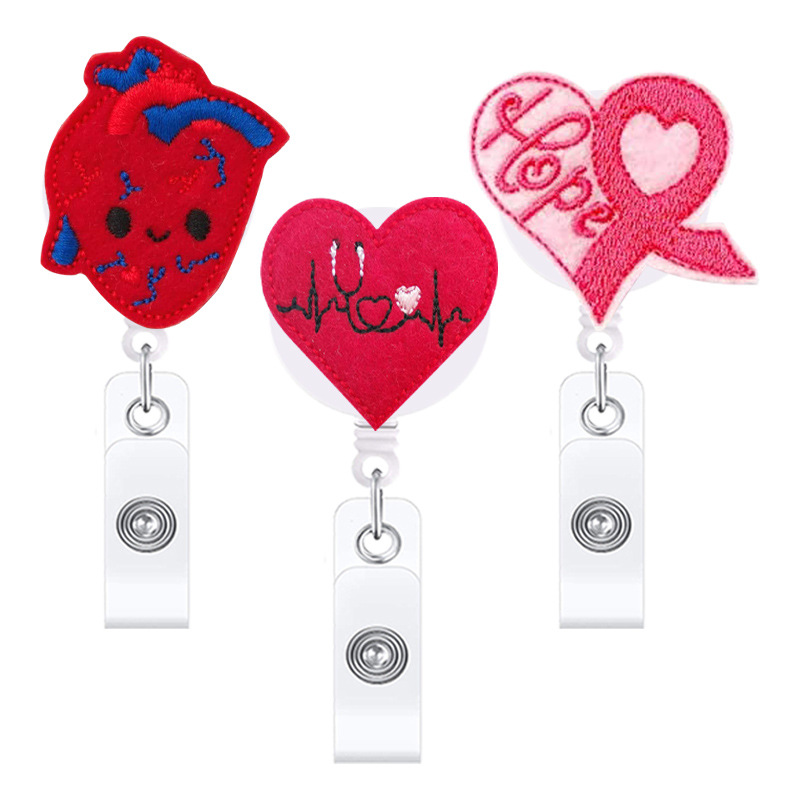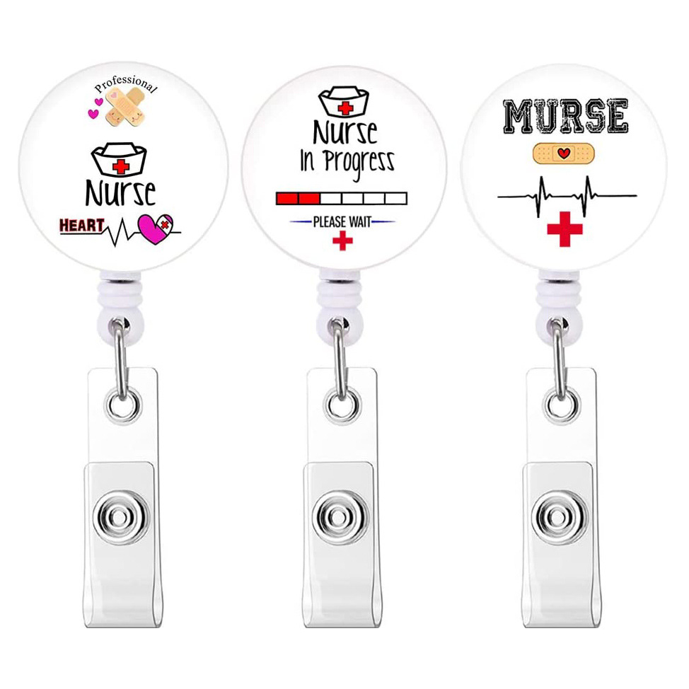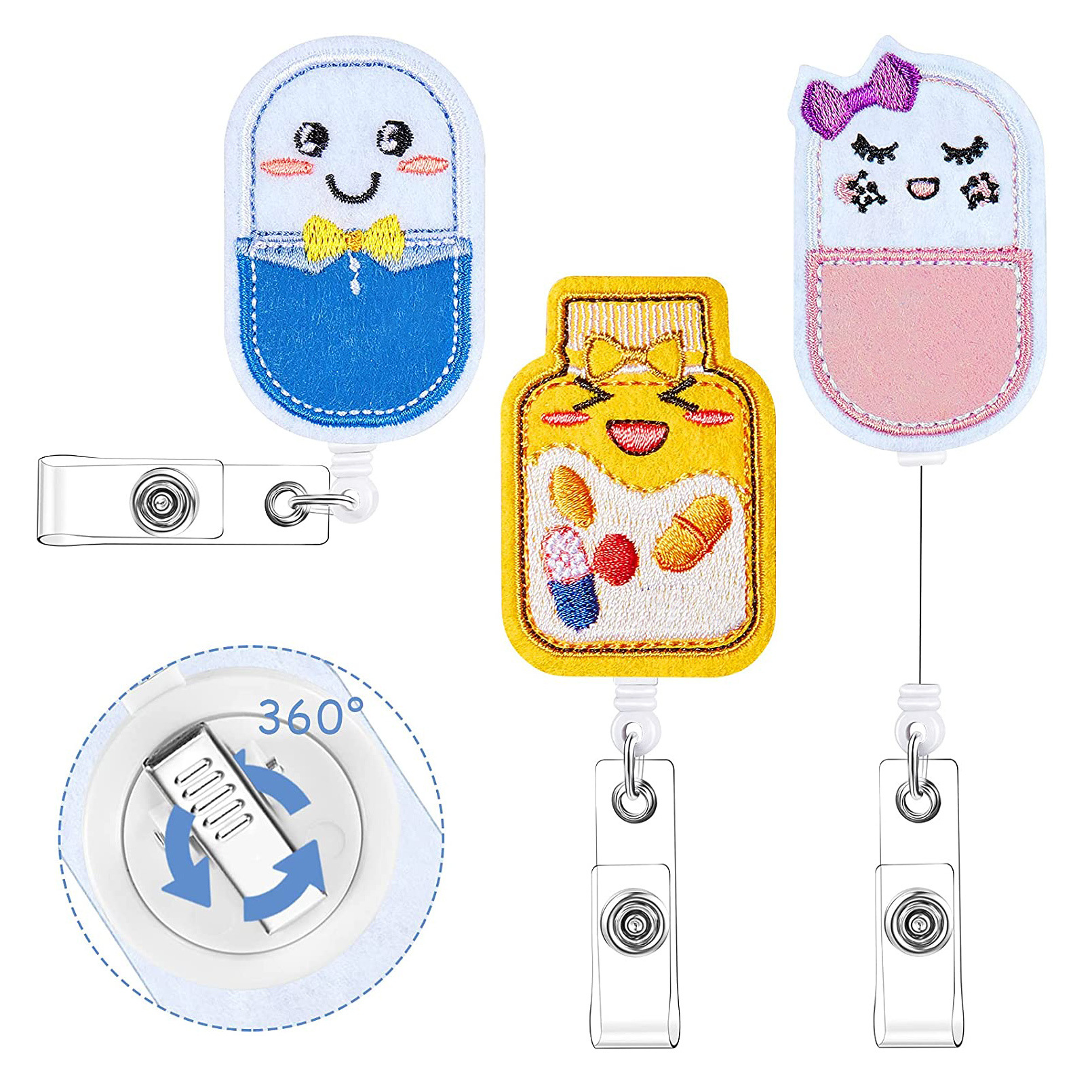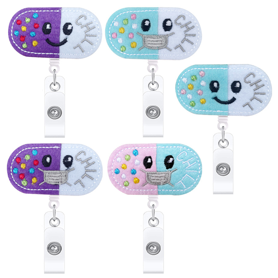 医療用フェルト刺繍プルタブ付き漫画ピル伸縮式プルタブ付きワニクリップ回転バッジリール