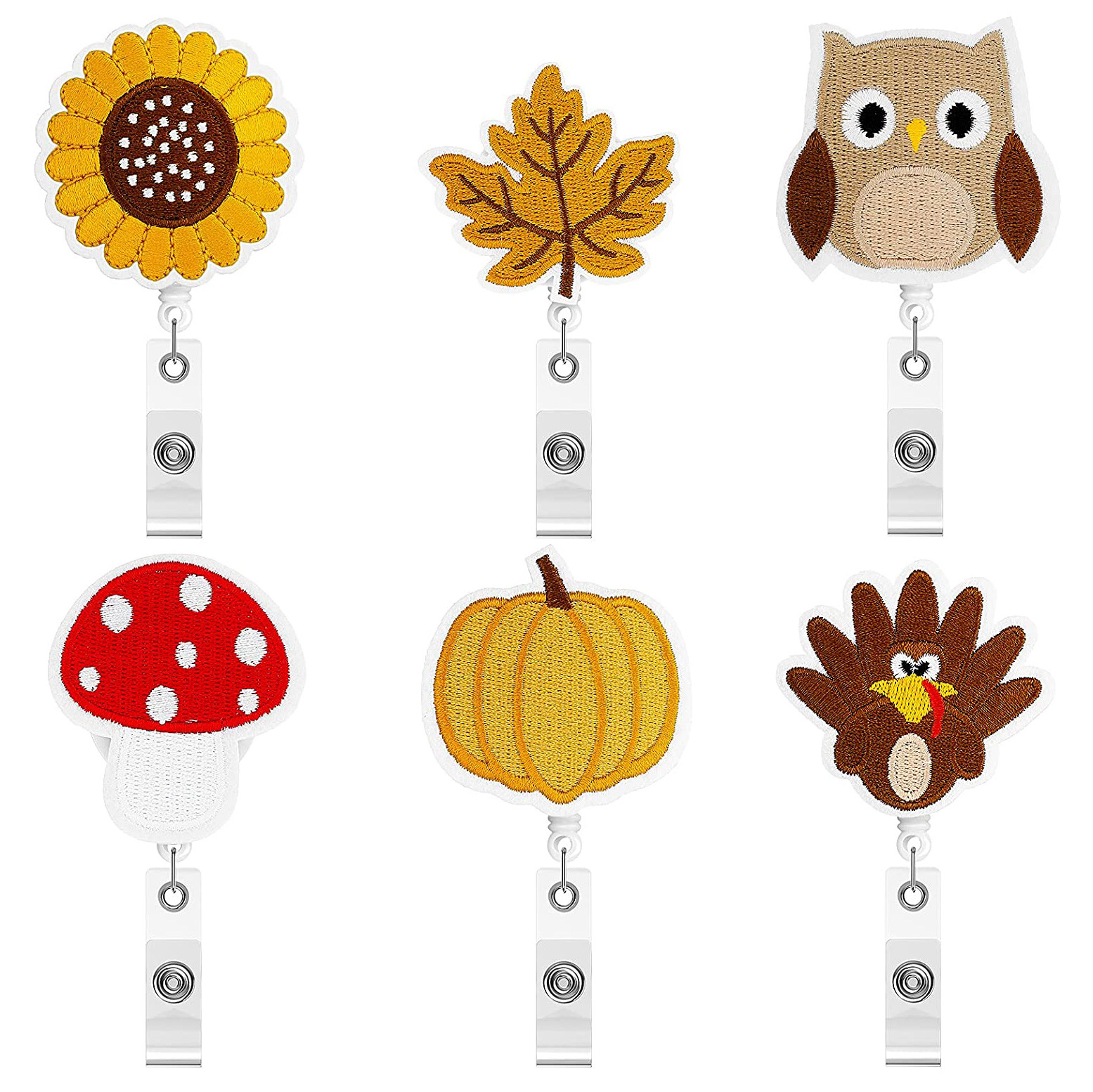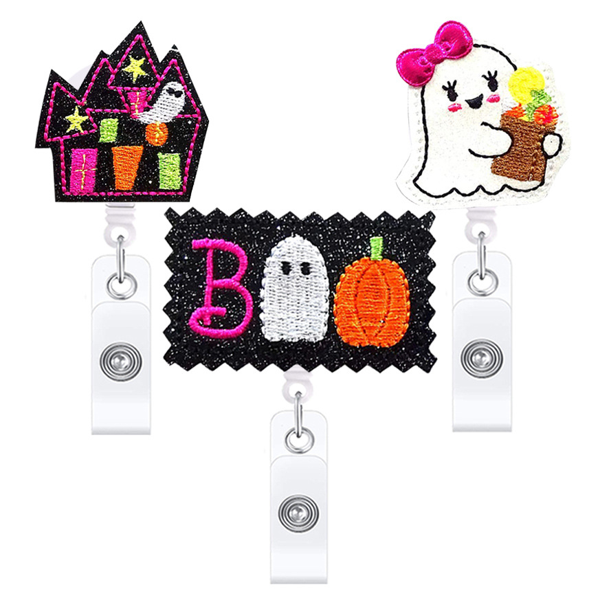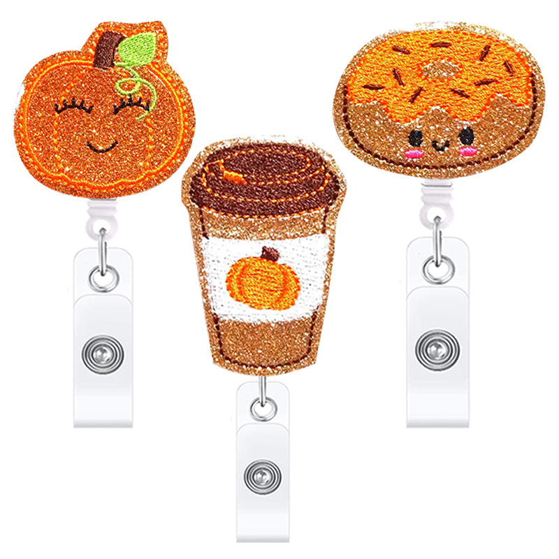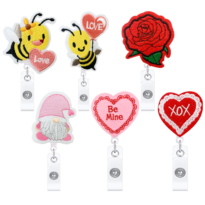 医療用フェルト刺繍プルタブ付き漫画ピル伸縮式プルタブ付きワニクリップ回転バッジリール