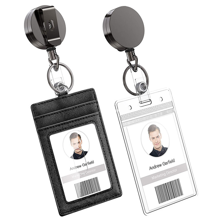 亜鉛合金楕円引きやすい伸縮キーホルダー黒いpu革証明書カードカバー1.5cmストラップ引きやすい