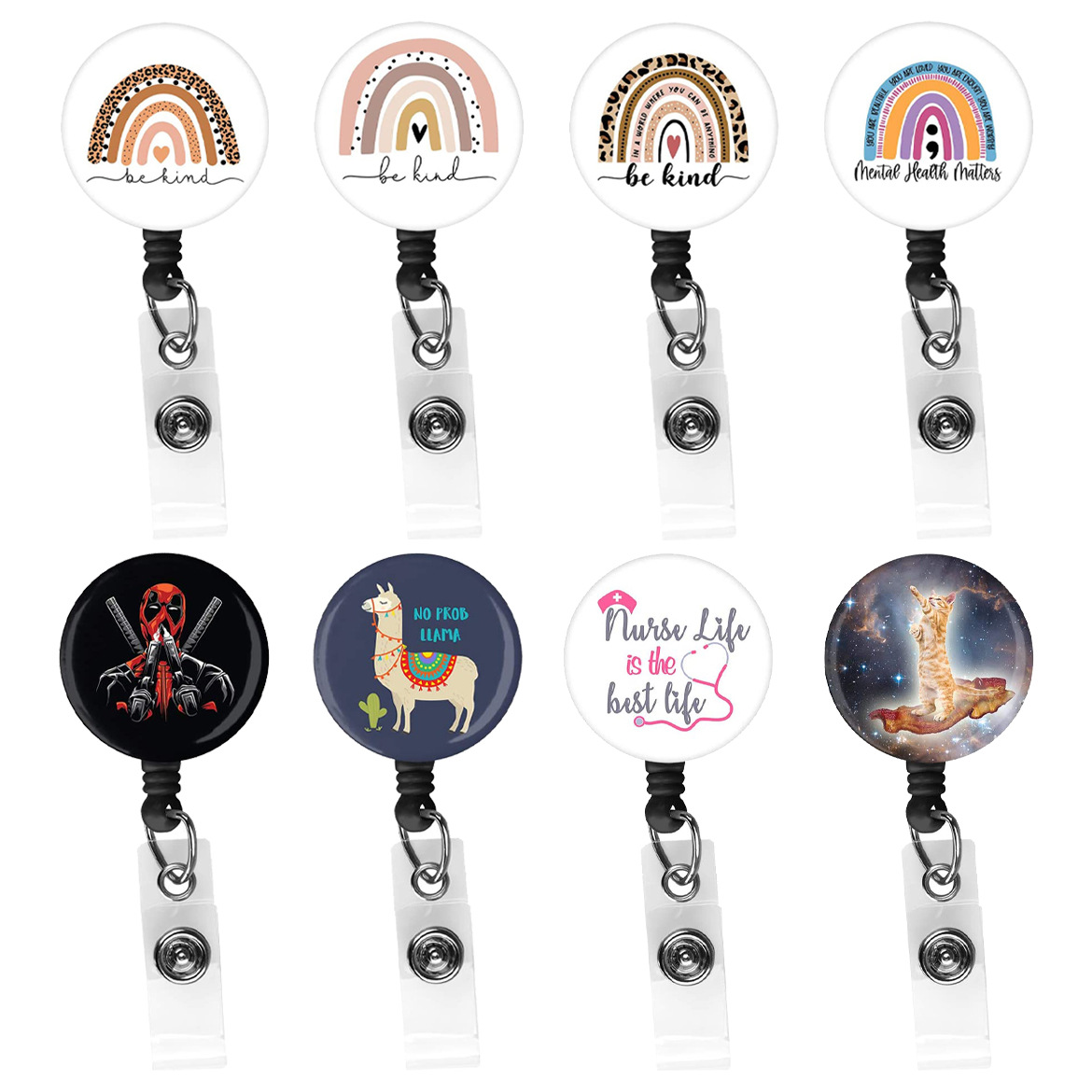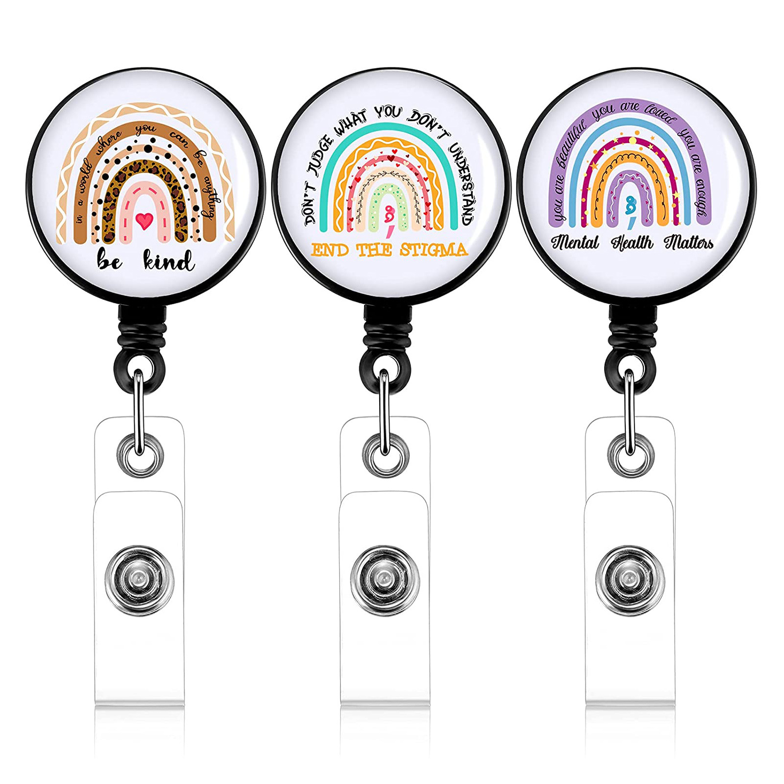 ABSドリップゴム英語レインボー医療用プルアップ回転ワニクリッププルアップ伸縮証明書バックルバッジリール