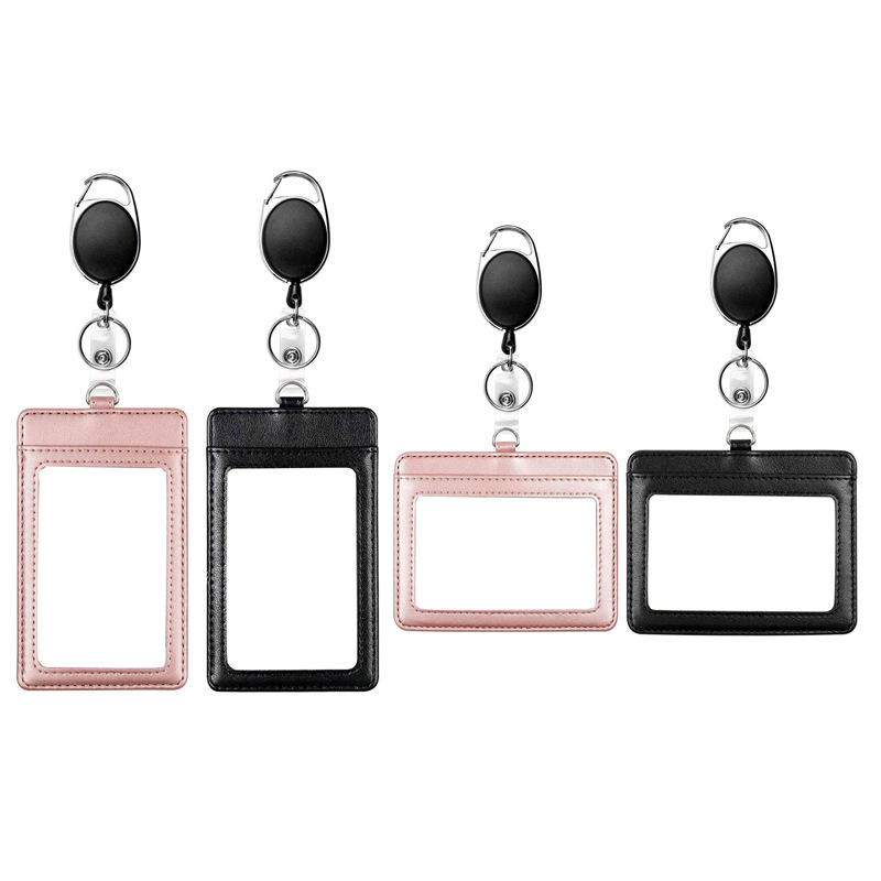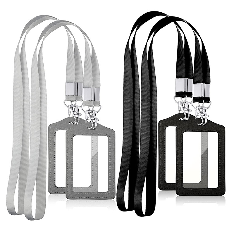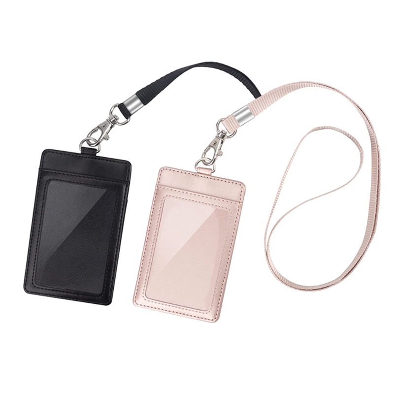 国境を越えて人気のある純色両面透明黒色皮革証明書カードセットpu胸札グレーidストラップカードセットスポット