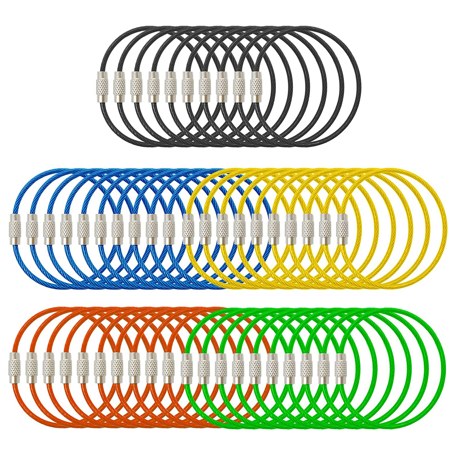 クロスボーダーの人気金属キーホルダーケーブルリングステンレスキーホルダーカラータグワイヤーロック