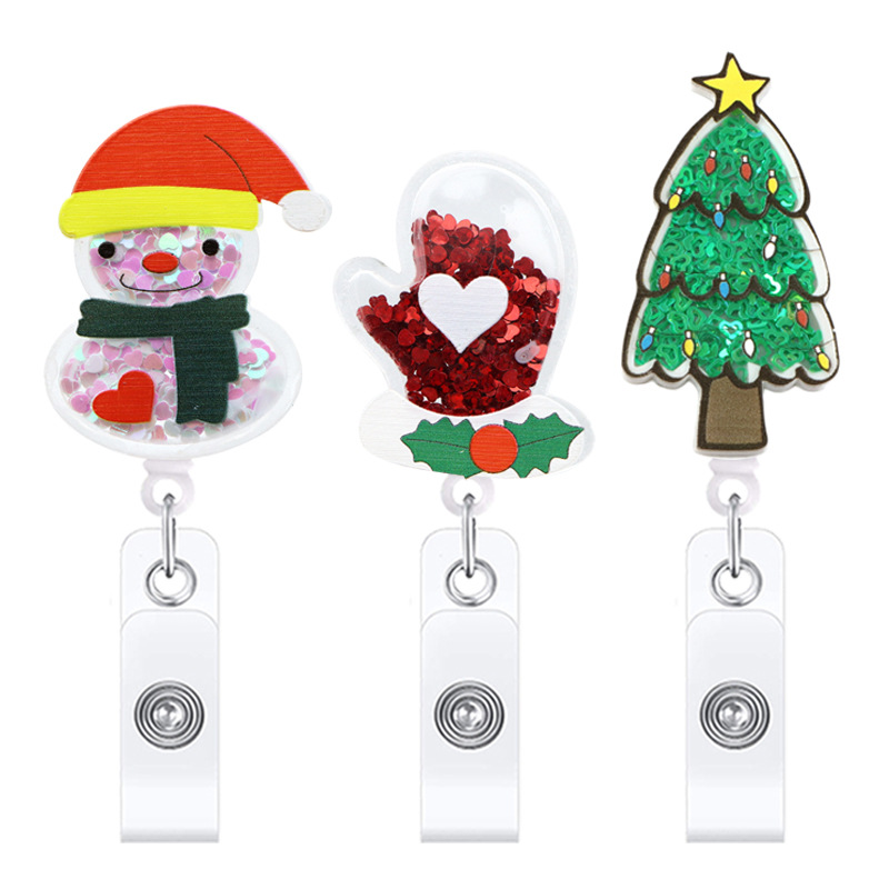 国境を越えて人気のクリスマスアクリル流砂閃粉は祝日の伸縮バッジを引きやすいプレゼント