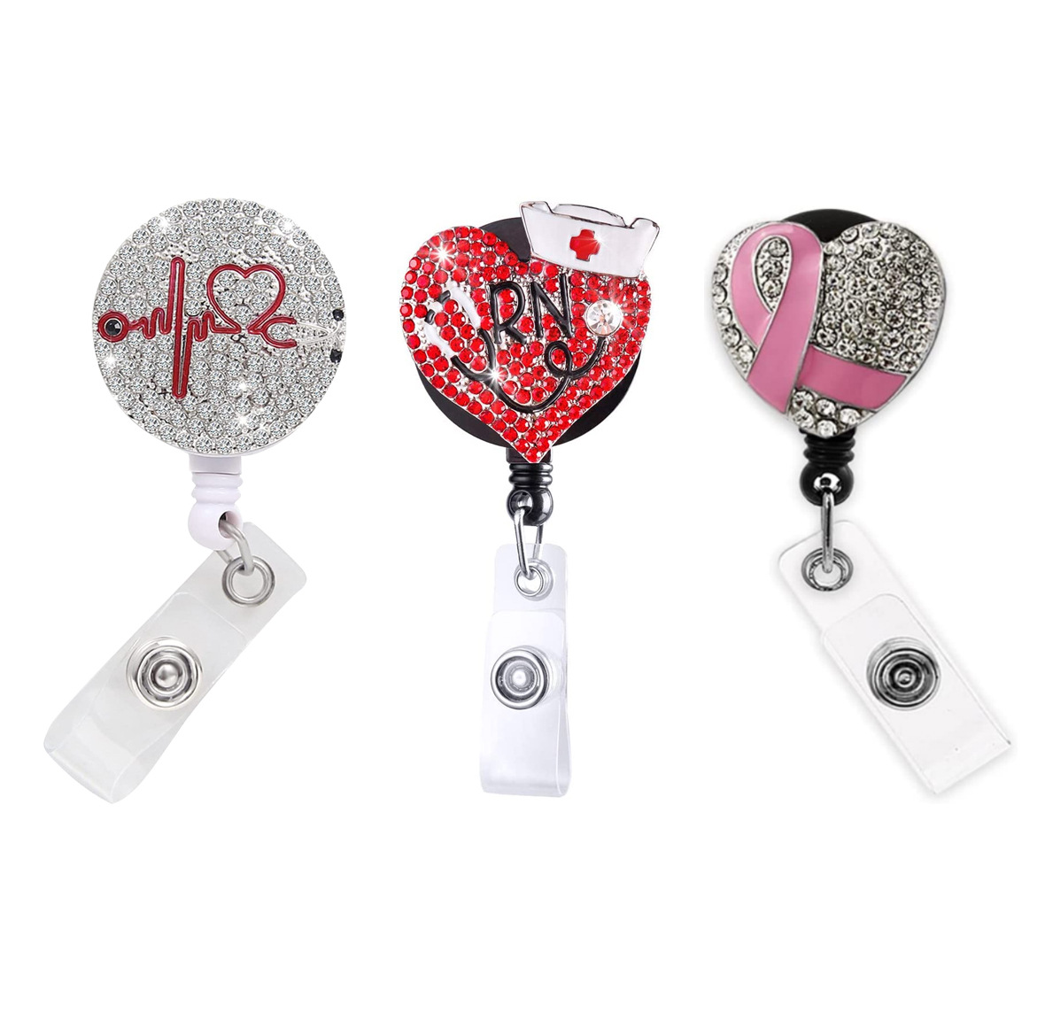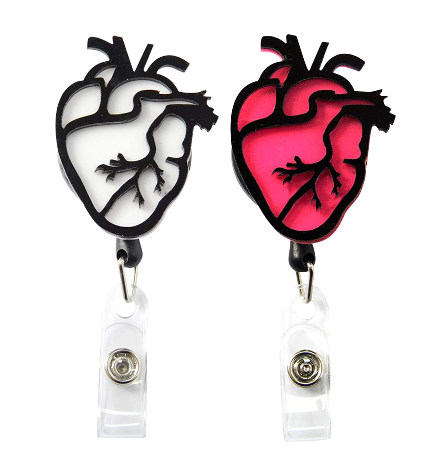 アクリル二重医師看護師赤い心臓伸縮可能バッジはボタンを引きやすい