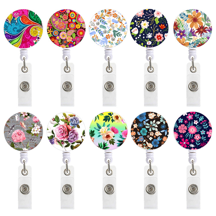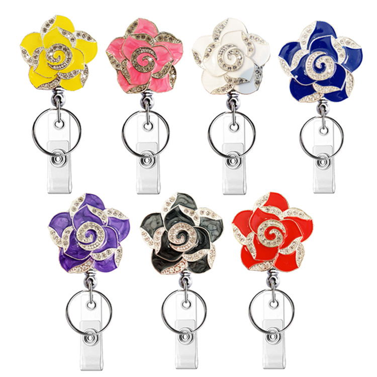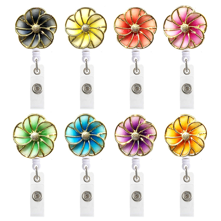クロスボーダー現物アクリルグラデーション花伸縮しやすいバックルツバキ回転ワニクリップ缶バッジクリップ